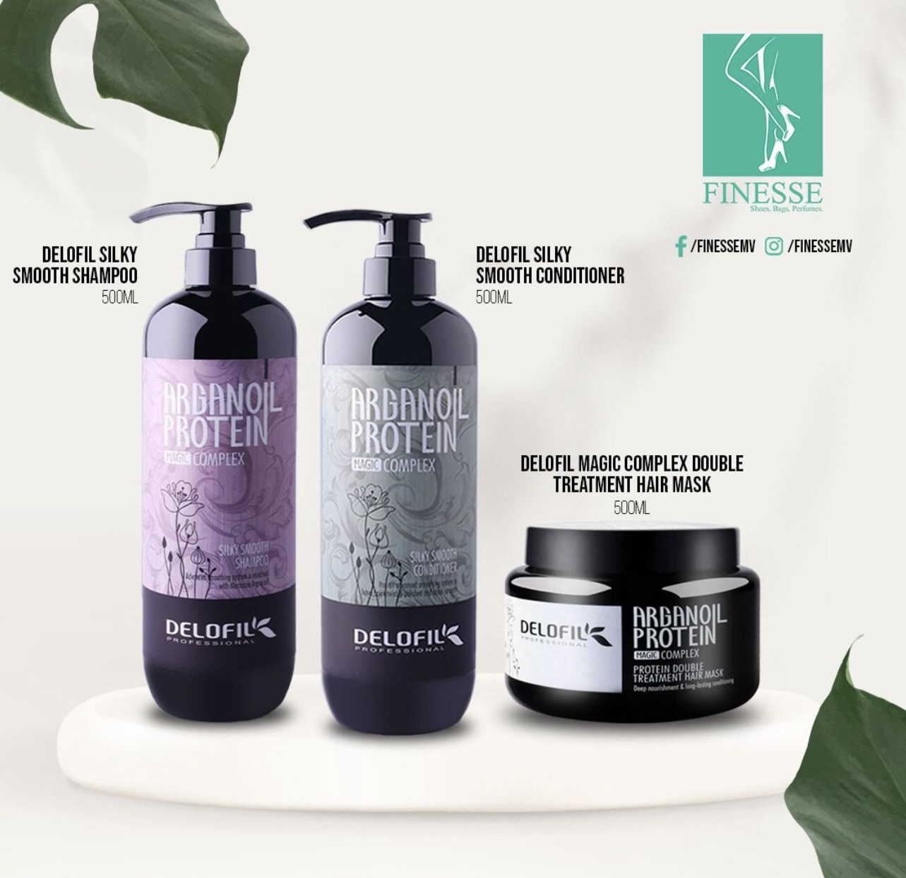 ( ޑެލޮފިލް ސިލްކީ ސުމޫތު ޝޭމްޕޫ+ ކޮންޑިޝަނަރ+ ޑަބަލްޓްރީޓްމަންޓް ހެއަރ މާސްކް+ އާރަގަން އޮއިލް)