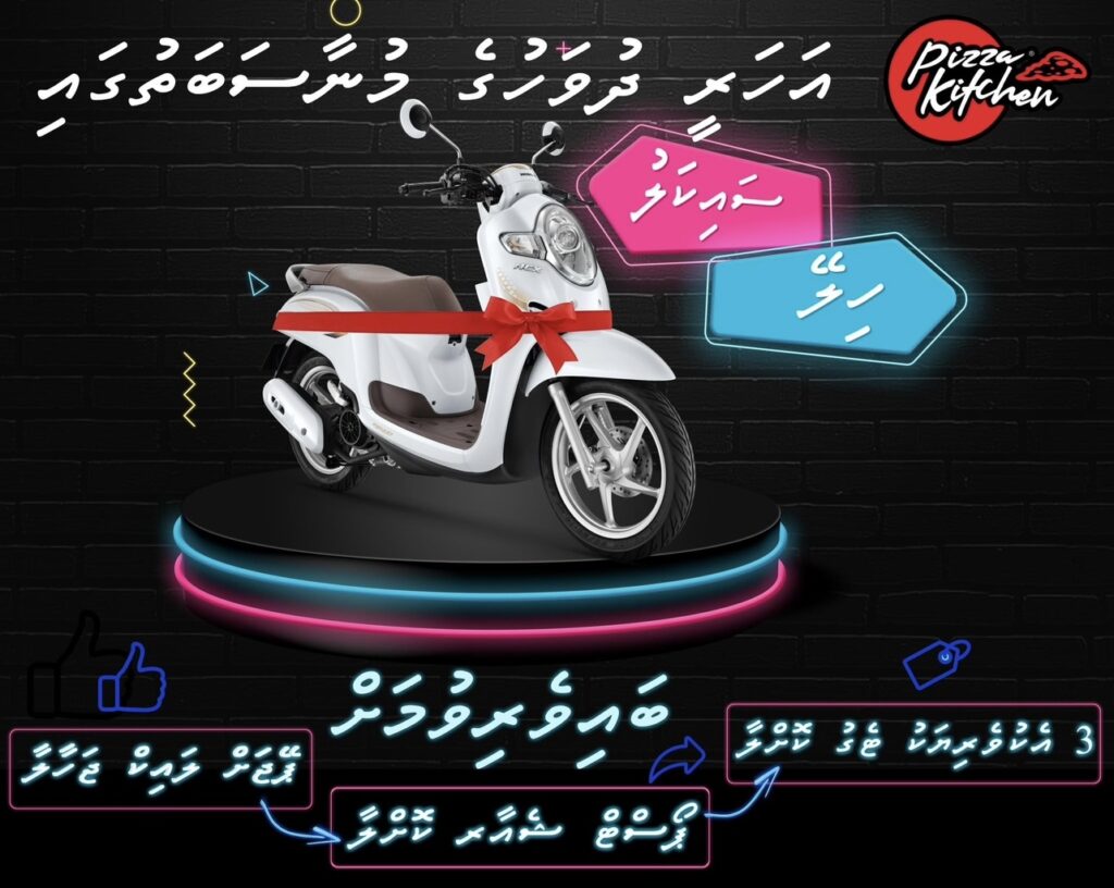 ޕިއްޒާ ކިޗަންއަށް ދެއަހަރު ފުރުމުގެ މުނާސަބާ ފާހަގަކުރުމުގެ ގޮތުން މުޅިން ހިލޭ ސައިކަލެއް ހޯދުމުގެ ރަނުގެ ފުރުސަތެއް ހުޅުވާލައިފިއެވެ.