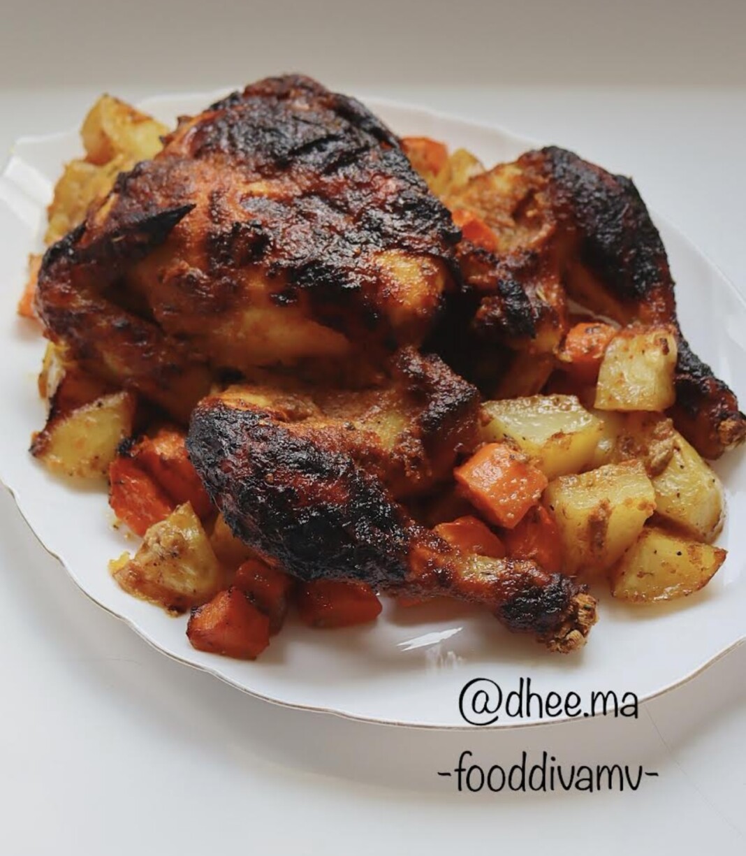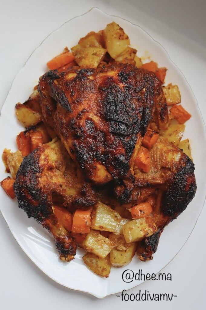 މަތީގައިވާ ހުރިހާ އެއްޗެއް މިކުސަރުން މިކްސްކޮށްލުމަށްފަހު ކުކުޅުގައި ރަނގަޅަށް ހާކާލާށެވެ. ބާކީވި ހަވާދުކޮޅު ހޫނު ކޮށްލުމަށްފަހު ސޯސް އެއް ގޮތަށް ބޭނުންކުރެވޭނެއެވެ. ކުކުޅު ލުމަށްފަހު އަލުވި ކޮރެޓް އެޅުމަށްފަހު ދެން ކުކުޅު ރަނގަޅަށް ފޮއިލްއިން ކަވަރ ކޮށްލުމަށްފަހު އަވަނަށްލާ 30 އާއި 35 މިނެޓް ވަންދެން 200 އާއި 250 ޑިގްރީގައި އަވަނުގައި ފިހެލާށެވެ.