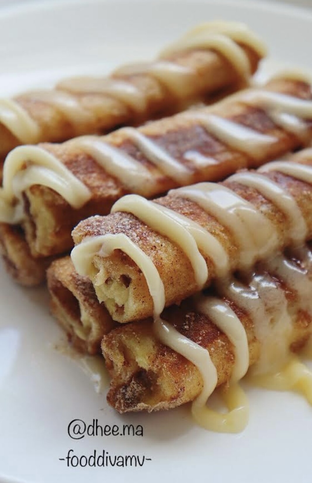 މަޑުގިނީގައި ބަޓަރކޮޅެއް ދިޔާކޮށްލާށެވެ. އެގްވޮޝް އުނގުޅާލި ޕާންފޮތި ތަވާގައި ހުރި ބަޓަރކޮޅުތެރެއަށްލާ ރަންކުލަ އަރަންދެން ބަހައްޓާލާށެވެ. އެއަށްފަހު ސިނަމަން ޝުގަރ މިކްސް އުނގުޅާލާށެވެ. ޕައިޕިން ބޭގަށް އެޅި ކްރީމް ޗީޒް ރޯލްތަކުގެ މައްޗަށް އަޅާލުމުން ނިމުނީއެވެ.