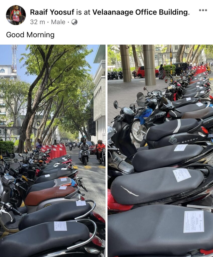 މައުލޫމާތުލިބިފައިވާ ގޮތުގައި މިއަދު ވަނީ ވެލާނާގެއިން ފެށިގެން ޓްރޭޑާސް ހޮޓެލް އާއި ހަމައަށް ހުރި ސައިކަލުތަކުގައި ސްޓިކަރ ޖަހާފައެވެ. ކޮންމެ މަހަކު ޖޫރިމަނާ ކޮށްގެން ދައުލަތަށް ބޮޑު އާމުދަނީއެއް ދަނީ ހޯދަމުންނެވެ.