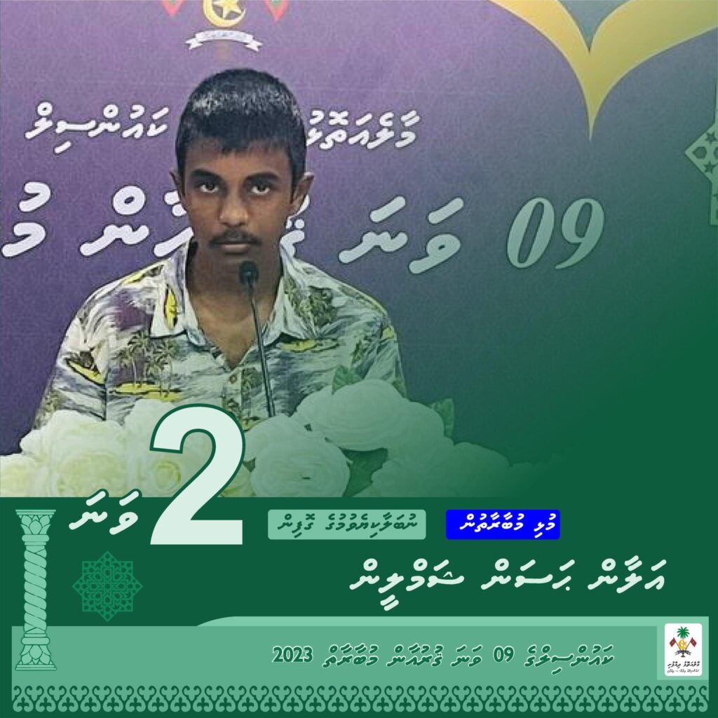 މުބާރާތުން 2 ވަނައަށް ދިޔައީ އާއިޝަތު އައިލީން އިލްޔާސެވެ. އައިލީން އަށް ވަނީ 8000 ރުފިޔާގެ ފައިސާގެ އިނާމުދީފައެވެ.