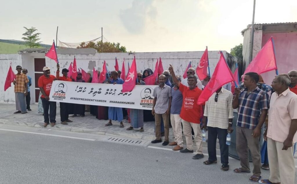 އެމަނިކުފާނު މިނިވަން ކުރަން ގޮވާލާ އިދިކޮޅު ކޯލިޝަނުން ވަނީ ސިލްސިލާ އިހުތިޖާޖުތަކެއް ބާއްވަން ފަށާފައެވެ. މިއަދު ބޭއްވި އިހުތިޖާޖުގައި މީހުން ދިރިއުޅޭ ހުރިހާ ރަށަކުން ޕީޕީއެމްގެ މެންބަރުންވަނީ ބެނާތަކާއި ޕޯސްޓަރުތައް ހިފައިގެން މަގުމައްޗަށް ނިކުމެފައެވެ. އެ ޕާޓީގެ މެންބަރުން މި އިހުތިޖާޖުގައި ގޮވާފައިވަނީ ރައީސް ޔާމީނުގެ މައްޗަށް ކުރިމިނަލް ކޯޓުން އިއްވި ހުކުމަކީ “ހަރާން” ހުކުމެއްކަމަށެވެ. އަދި އެމަނިކުފާނު މިހާރުން މިހާރަށް ބަންދުން ދޫކުރަން އިދިކޮޅުން ގޮވައިލިއެވެ.