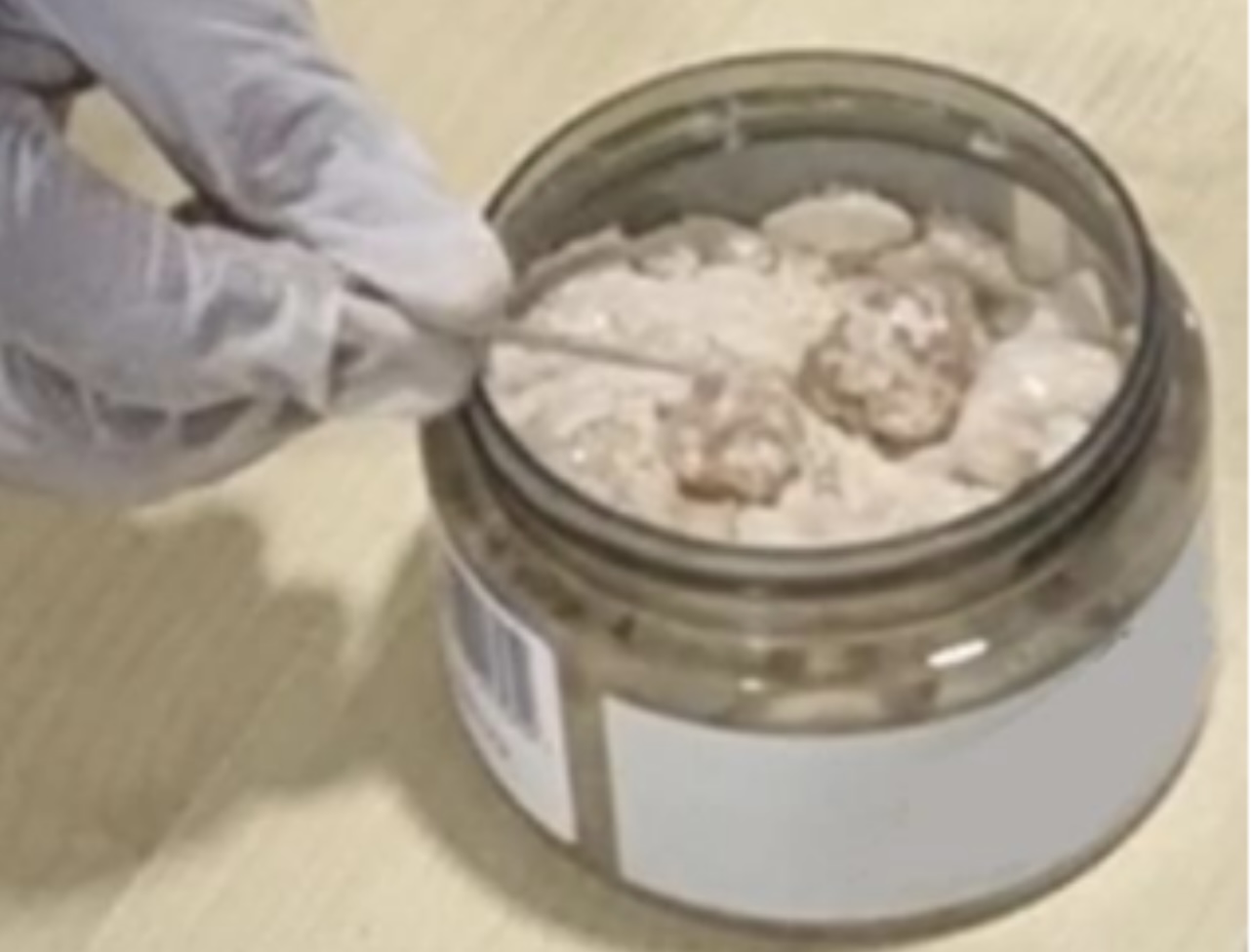 މިގޮތުން 2023 މާރިޗް 29 ވަނަދުވަހު ބަލާ ފާސްކުރެވުނު 2 ޕެކޭޖެއްގެ ތެރޭގައި ހުރި 6 ދަޅަކުން، އަދި މާރިޗް 31 ވަނަދުވަހު ބަލާ ފާސްކުރެވުނު ޕެކޭޖެއްގެ ތެރޭގައި ހުރި 4 ދަޅަކުން ފެނުނު މަސްތުވާތަކެތި ކަމަށް ޝައްކުކުރެވޭ ތަކެތި ފުރަތަމަ މަރުހަލާގައި ތަޙުލީލުކުރި އިރު، މަސްތުވާތަކެތީގެ ބާވަތެއް ކަމަށްވާ މެފެޑްރޯން (Mephedrone) އަށް ވަނީ ޕޮޒިޓިވް ވެފައެވެ.