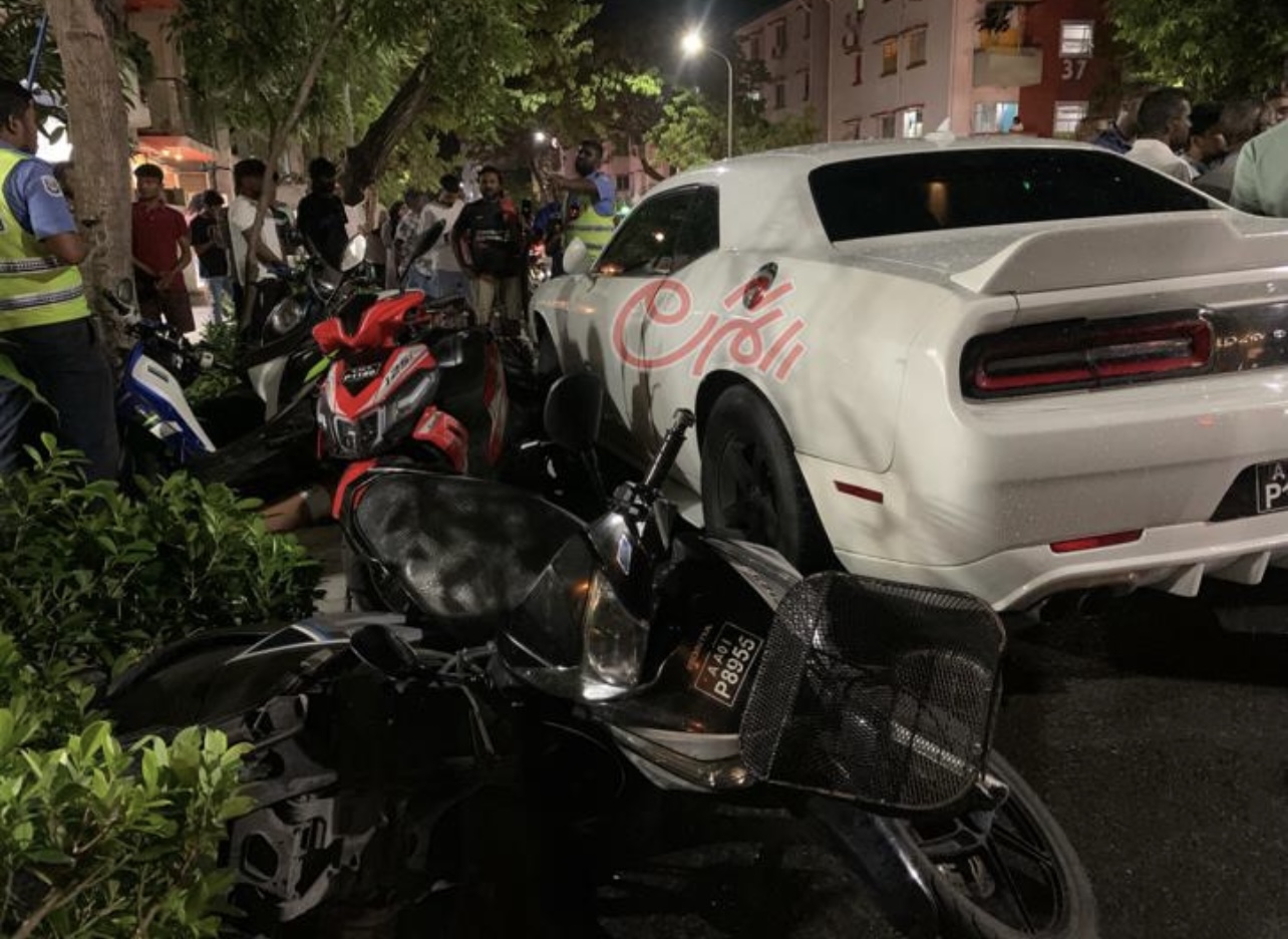 ހުޅުމާލެ ނިރޮޅުމަގުން ދުއްވާފައި ދިޔަ ޕްރައިވެޓް ކާރެއް ޕާކްކޮށްފައި ހުރި ސައިކަލުތަކެއްގައި ޖެހި އެކްސިޑެންޓްވެއްޖެއެވެ.
