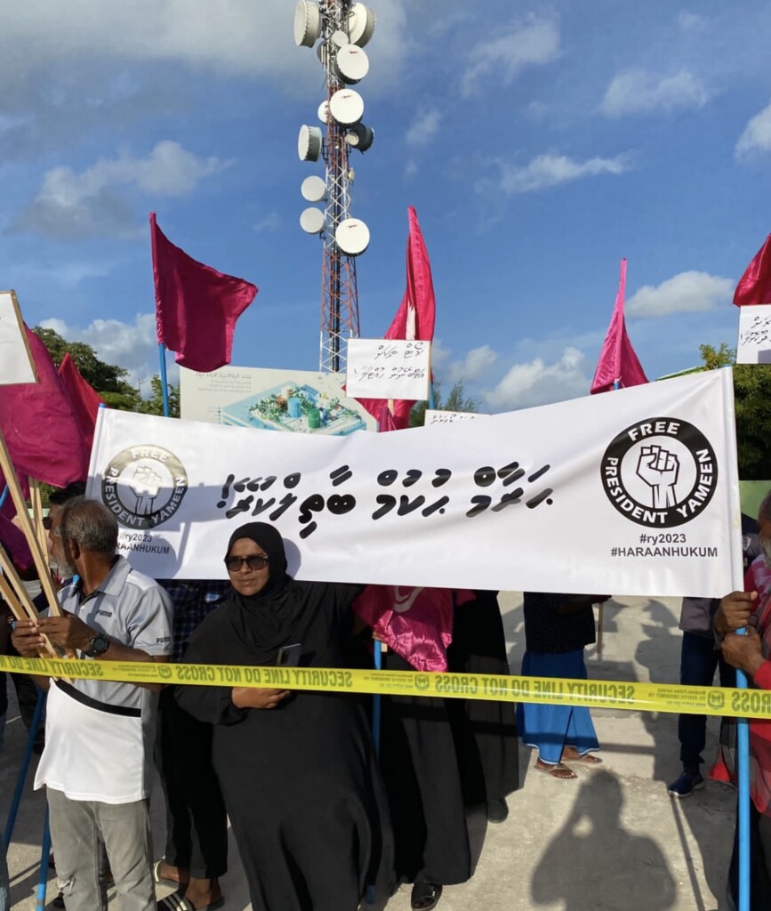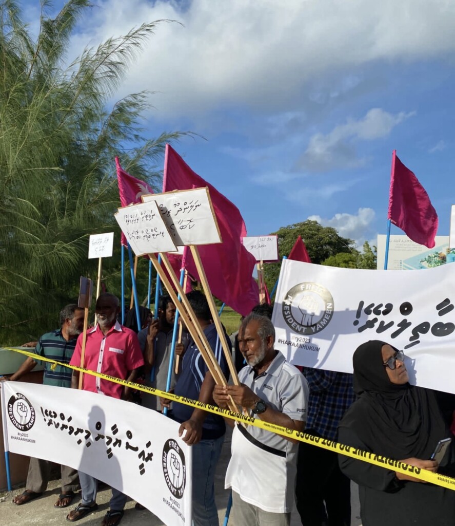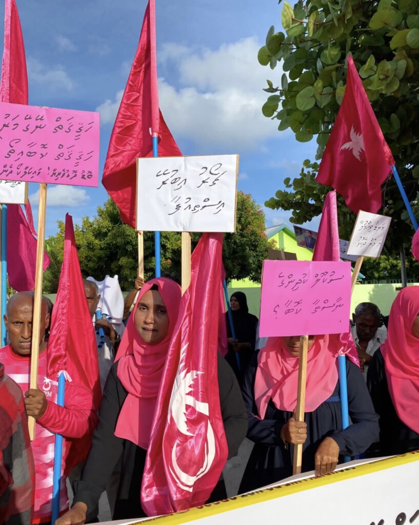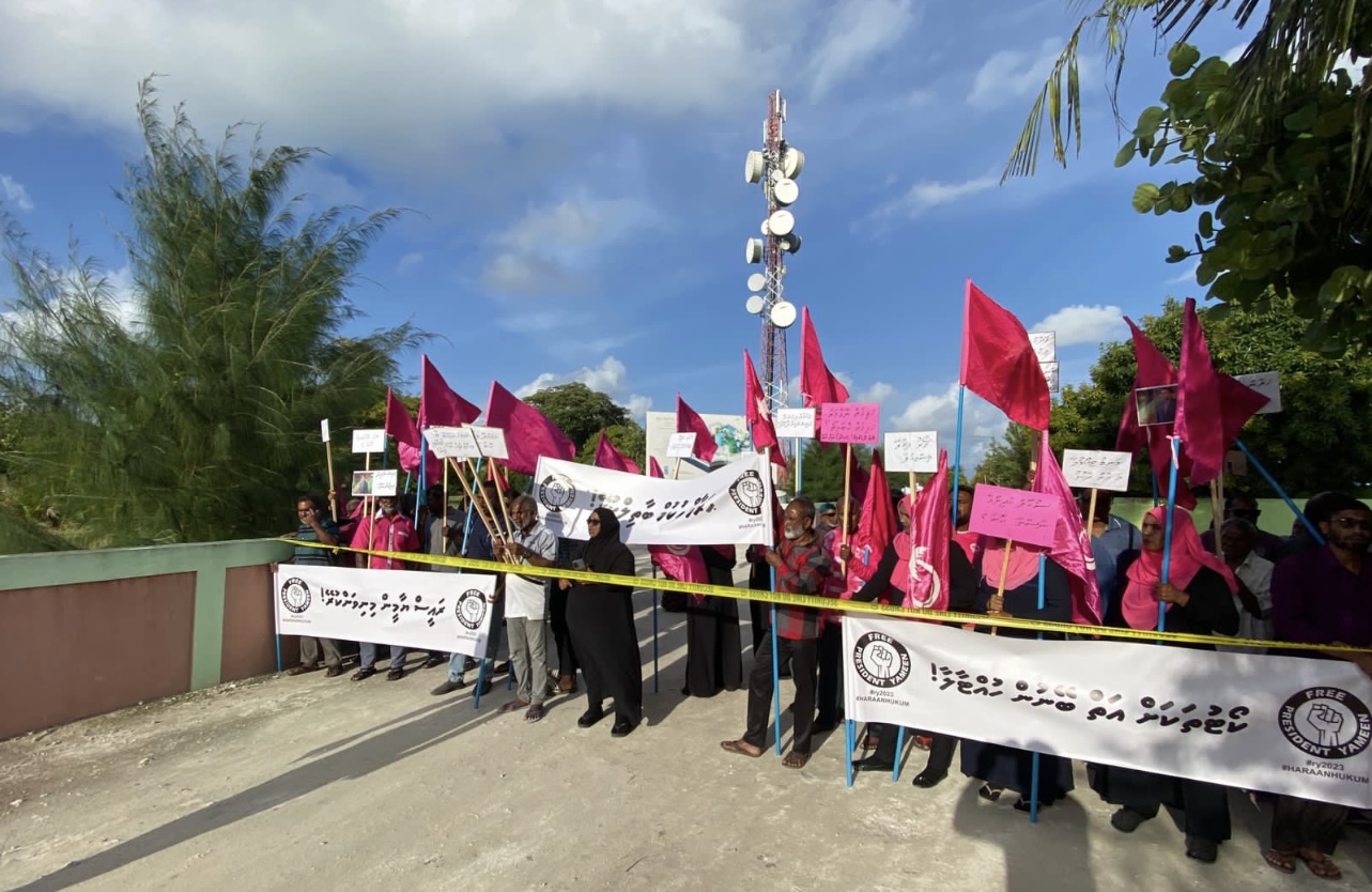 އެރަށުގެ ގިނަ ބަޔަކު ވަނީ، ޕީޕީއެމްހެ ދިދަ އާއިއެކުގައި އެއްވެ، އިދިކޮޅު ލީޑަރު ރައީސް ޔާމީން މިނިވަން ކުރަން ގޮވައިލައި އަޑު އުފުލައިފައެވެ. ނަމަވެސް ފުލުހުން ވަނީ މި އެއްވުމަށް ހުރަސް އަޅައިފައެވެ.