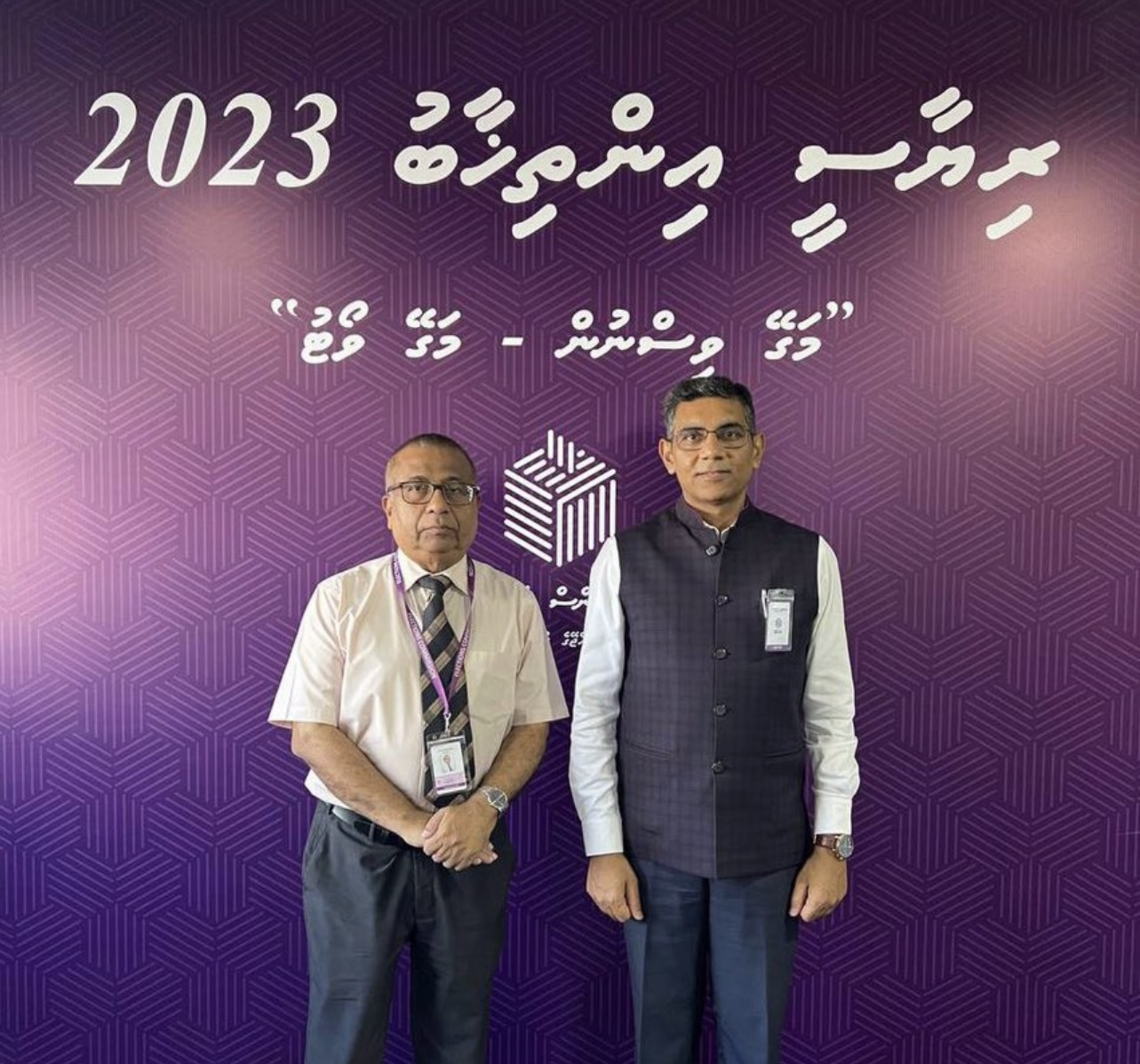 ދިވެހިރާއްޖެއަށް އިންޑިއާ އިން ކަނޑައަޅުއްވާފައި ހުންނަ ސަފީރު މަނޫ މަހާވަރު އާއި އިލެކްޝަންސް ކޮމިޝަންގެ ރައީސް ފުއާދު ތައުފީގު ބައްދަލު ކުރައްވައިފިއެވެ.