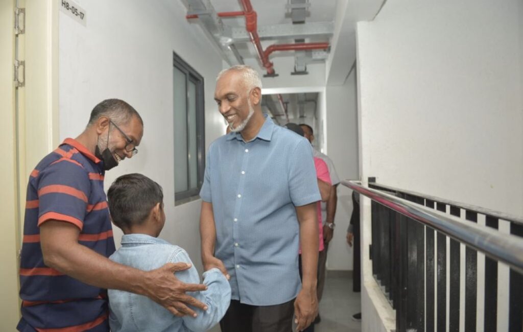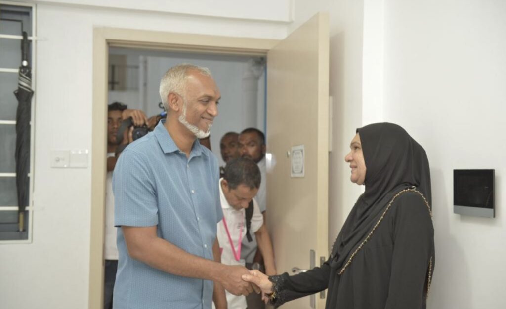 ހިޔާ ފްލެޓްގައި ދިރިއުޅެމުންދާ ރައްޔިތުންގެ ހާލު ބެއްލެވުމަށްޓަކައި މުއިއްޒު އެ ސަރަހައްދަށް ވަޑައިގެންނެވީ ހަވީރުގެ ވަގުތެއްގައެވެ. މުއިއްޒަށް މަރުހަބާ ދެއްނެވުމަށްޓަކައި އިދިކޮޅު ޕީޕީއެމް-ޕީއެންސީ ކޯލިޝަންގެ ގިނަ ސަޕޯޓަރުން އެ ސަރަހައްދަށް ވަޑައިގަތެވެ. އަދި އެމަނިކުފާނަށް ވަނީ ހޫނު މަރުހަބާއެއް ވެސް ދަންނަވާފައެވެ.