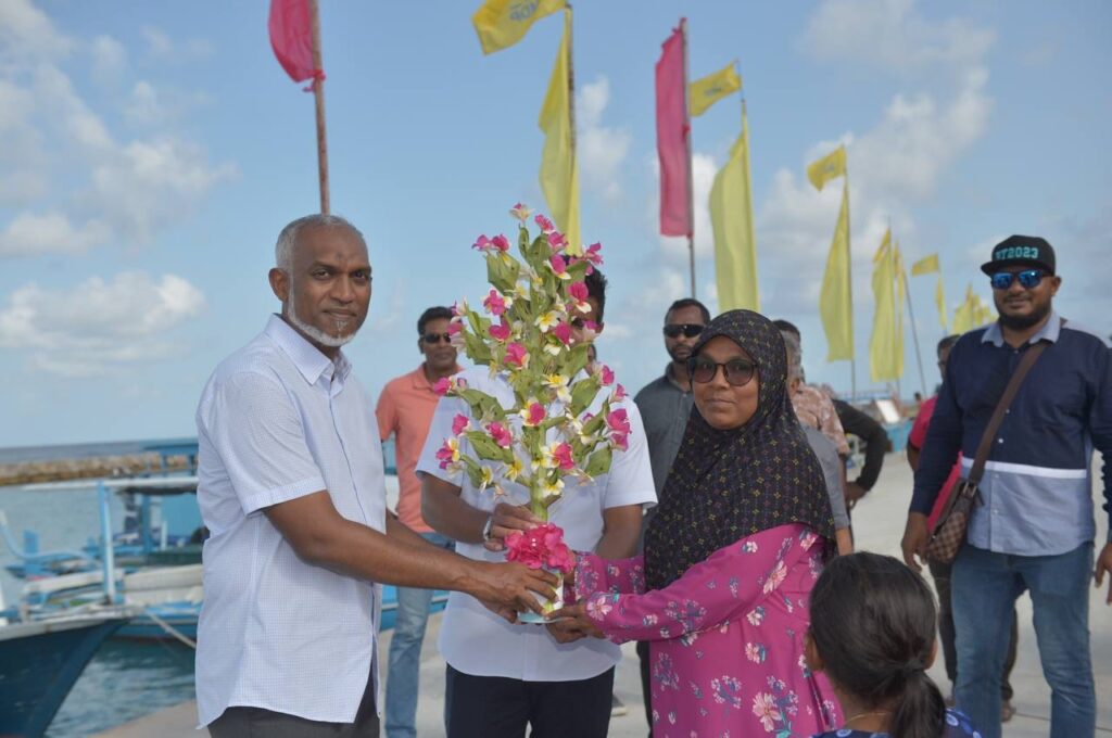 މިގޮތުން މިއަދު ހަވީރު ޑރ. މުއިއްޒު އެރަށަށް ވަޑައިގަތުމުން އޭނާއާ ޓީމަސް ވަަނީ ހޫނު މަރުހަބާއެއް ދަންނަވާފައެވެ.