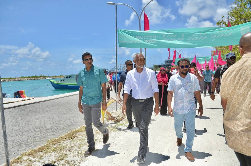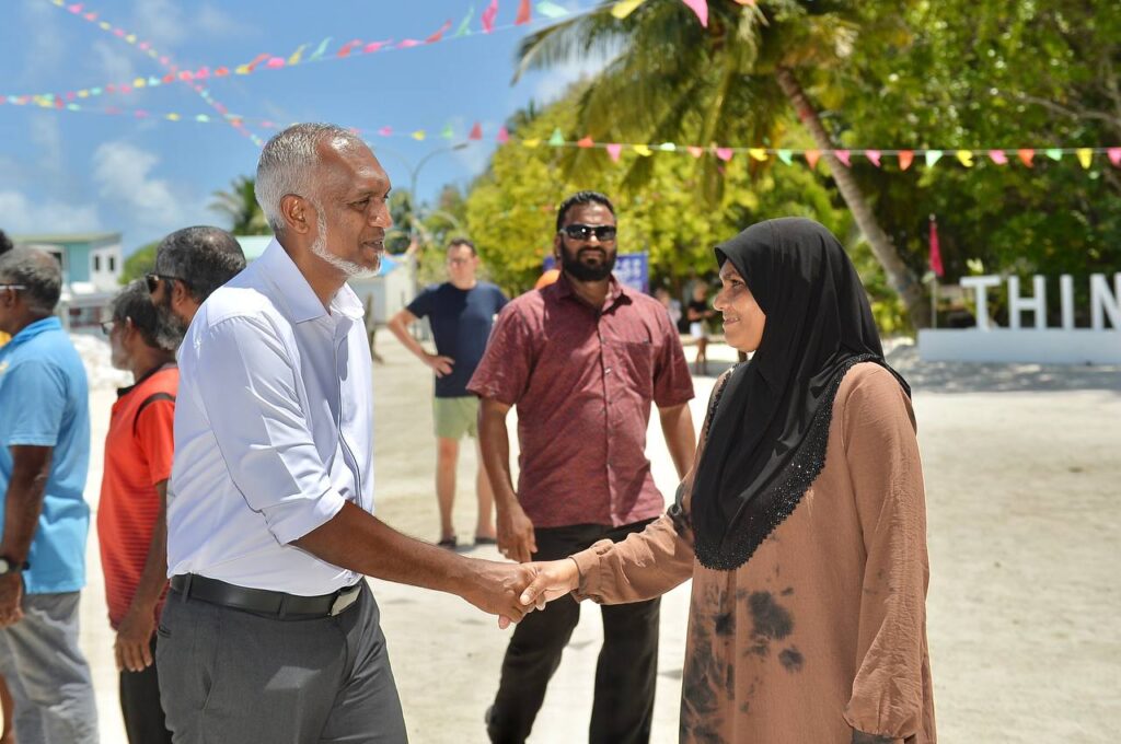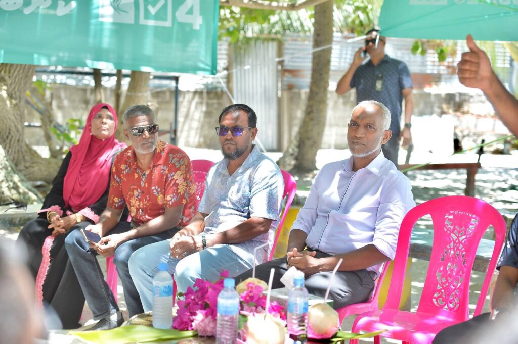 މީގެ އިތުރުން ވ ތިނަދޫގައި ތިބި އިދިކޮޅު ސަޕޯޓަރުންނާ ބައްދަލު ކުރައްވައި މުއިއްޒު ވިދާޅުވީ ރަށުގެ ރައްޔިތުން އޭނާ އަށް އިތުބާރު ކުރައްވާނެ ކަމަށް އުންމީދު ކުރައްވާ ކަމަށެވެ. އަދި އާބާދީ ގޮތުން ކުޑަވިޔަސް، ތޮއްޖެހިގެން ދިރިއުޅޭ ކަމުގައި ވިޔަސް، ރައްޔިތުންނަށް ފުރުސަތު ހޯދައި ދިނުމަކީ އަދުލުވެރިކަމެއް ކުރުމަށް އެޅޭނެ ބާރެއް ކަމުގައި މުއިއްޒު ވިދާޅުވިއެވެ.