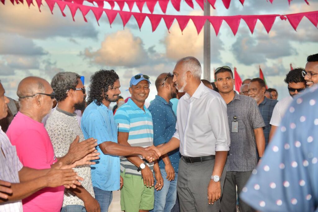 “ވިހަފަރަކީ މި ސަރަޙައްދުގައި އެއާޕޯޓެއް އަޅަން އެންމެ އެކަށީގެންވާ ރަށް. ވިހަފަރުގައި މިހާރު ހަދާފައިވާ އެގްރީމެންޓް ޤާނޫނީ ގޮތުން ނިއުޅާލެވިއްޖެނަމަ އެރަށުގައި އެއާޕޯޓެއް ޤާއިމްކޮށްދޭނަން” މުއިއްޒު ވިދާޅުވިއެވެ.