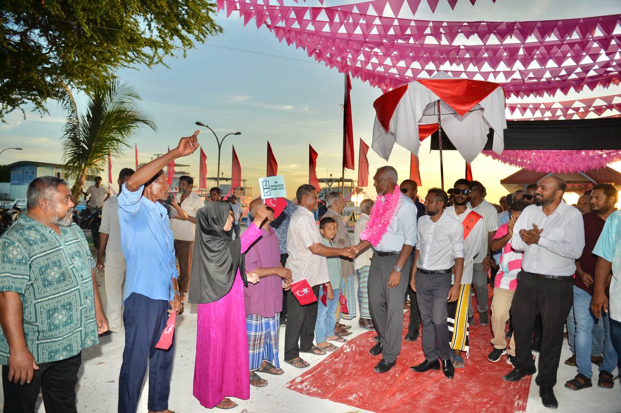ގއ ވިލިނގިއްޔަށް އިދިކޮޅު ރިޔާސީ ކެންޑިޑޭޓު ޑރ މުހައްމަދު މުއިއްޒު ވަޑައިގަތުމުން ގިނަ އަދަދެއްގެ ބަޔަކު އެމަނިކުފާނަށް މަރުހަބާ ކިޔުމަށް ނިކުމެއްޖެއެވެ.