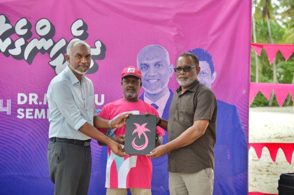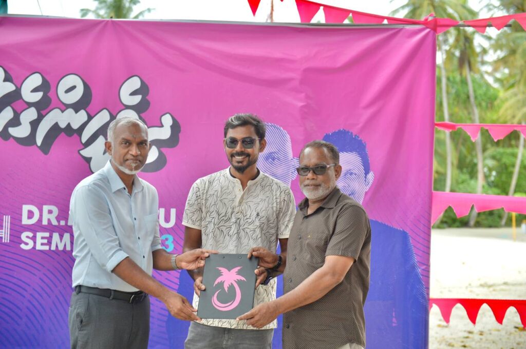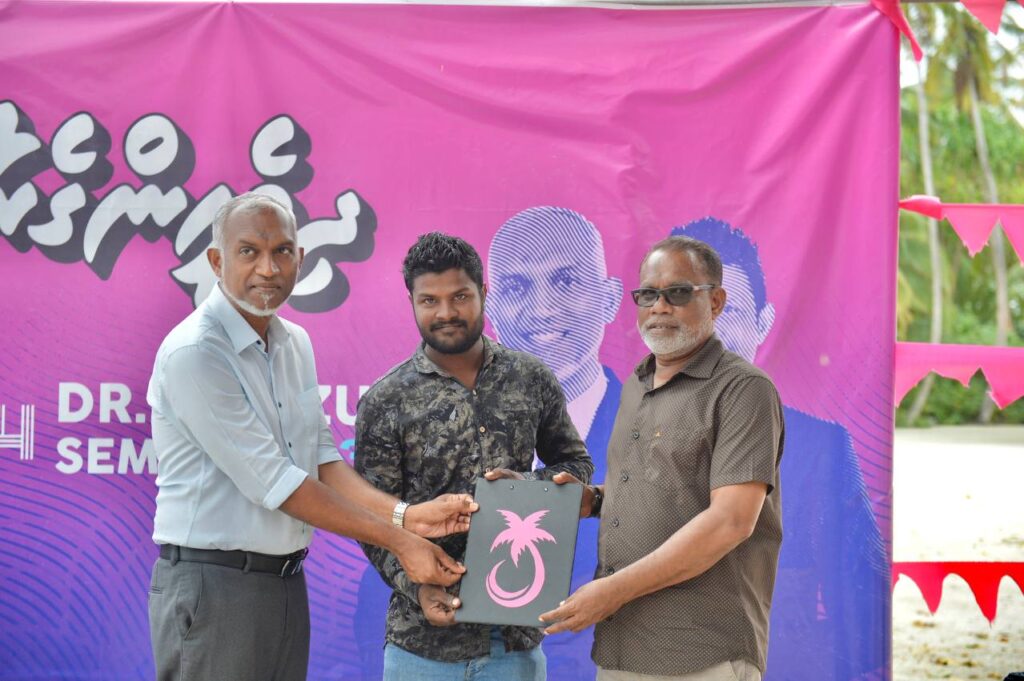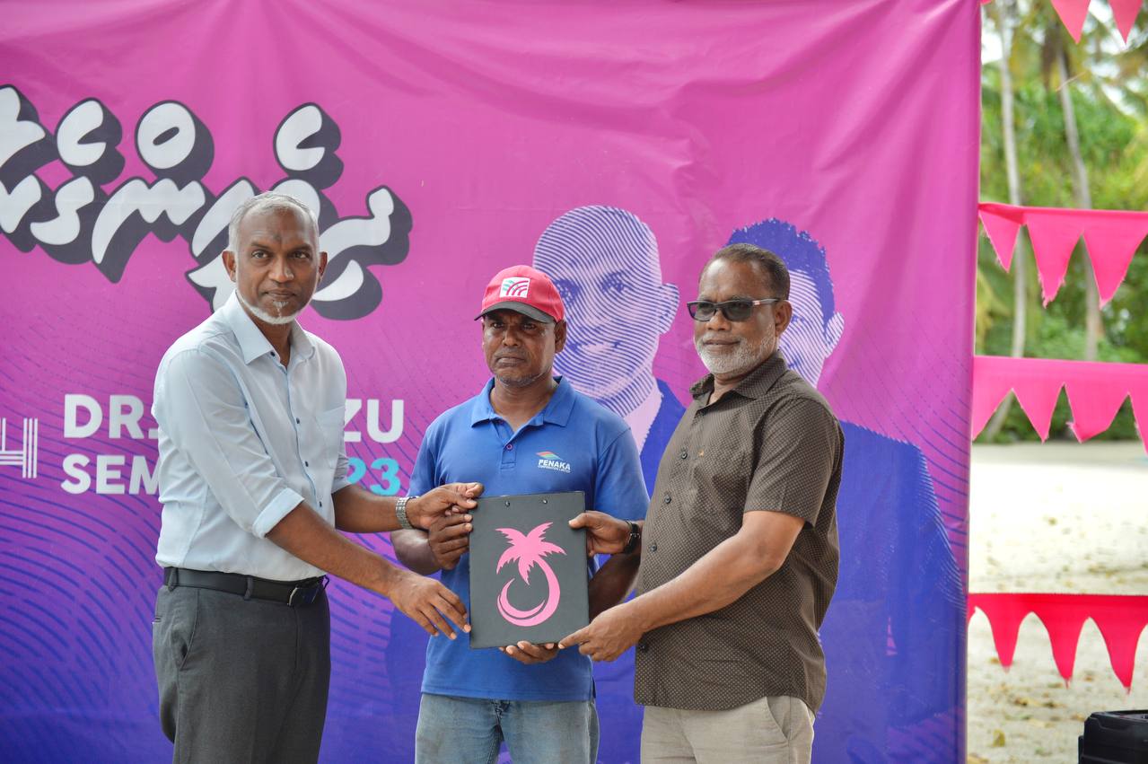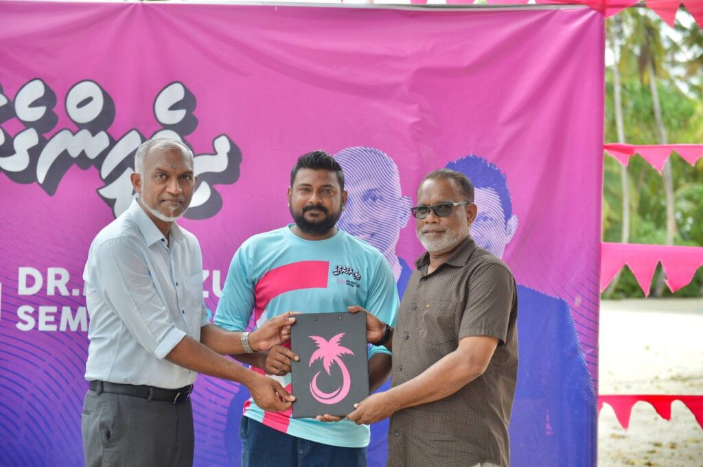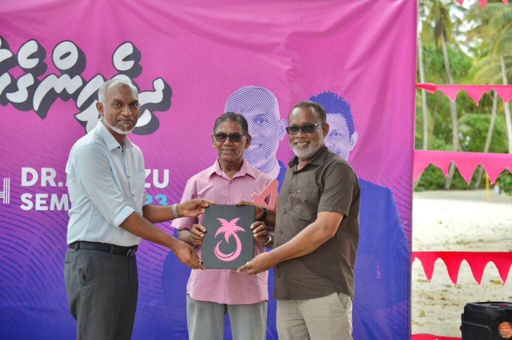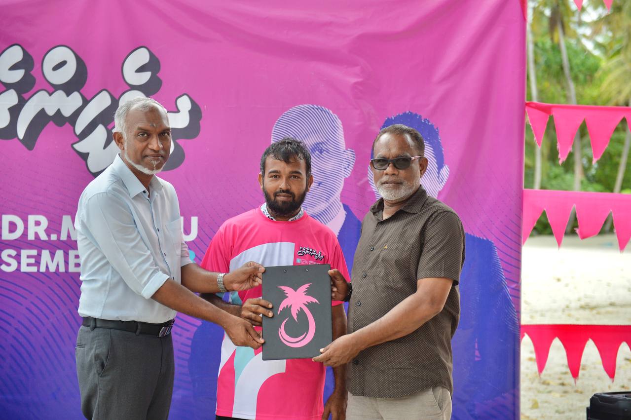 މިމީހުންގެ ފޯމު ތަކާއި ހަވާލުވީ ޕީޕީއެމް/ޕީއެންސީގެ ރިޔާސީ ކެންޑިޑޭޓް ޑރ. މުއިއްޒުއާއި، ޕީއެންސީގެ ރައީސް އަބްދުއްރަހީމެވެ. މުއިއްޒުއަށް މަރުހަބާ ކިޔުމަށް އެރަށުގެ ބައެއް އެމްޑީޕީ މެމްބަރުންވެސް ވަނީ ނިކުމެ ޖަލްސާގައިވެސް ބައިވެރި ވެފައެވެ.