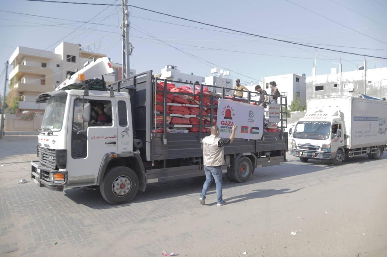 މި މަހުގެ ހަތްވަނަ ދުވަހުގެ އިސްރާއިލުން ފަލަސްޠީންއަން ހަމަލާދޭން ފެށިފަހުން އައިއޭސީން ވަނީ ތިން ހޮސްޕިޓަލެއްގެ ޑޮކްޓަރުންނާއި ނަރުހުންނަށް ކާބޯތަކެތި ފޯރުކޮށްދީފައެވެ. އަދި މިހާރު ވެސް ފަލަސްތީނުގެ ރައްޔިތުންނަށް 1،000 ފުޑް ޕެކޭޖު ބެހުމުގެ މަސައްކަތް ޣައްޒާގައި ކުރިއަށްދާ ކަމަށް އެ ޖަމުޢިއްޔާއިން ބުނެއެވެ.