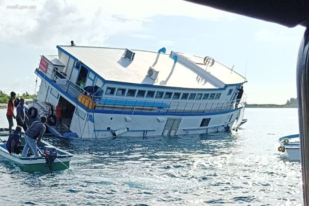 އެމްޑީއެފުން ބުނީ ޖުމުލަ 9 ފަޅުވެރިންނާއެކު ދަތުރުކުރަމުންދިޔަ މި މުދާ އުފުލާ ބޯޓު، ނެރުމައްޗަށް އުނުރު ކަމުގެ މައުލޫމާތު އިއްޔެ ހެނދުނު 06:13 އެހާކަންހާއިރު ލިބުމާއެކު، ކޯސްޓްގާޑް ތާޑް ސްކޮޑްރަންގެ ސިފައިން ވަނީ އެހީތެރިކަން ފޯރުކޮށްދިނުމުގެ ގޮތުން އެ ސަރަހައްދަށް ގޮސްފައި ކަމަށެވެ. އަދި އެ ބޯޓު ދިޔަވަމުން ދާތި ޕަންޕު ޖައްސައިގެން ފެން ހިއްކުމާއި ބޮޓުގެ އިންޖީނު ރޫމާ ދިމާ އަޑިން 5 ފޫޓަށް ފަޅައިގެންގޮސްފައި އޮތް ތަން ބެއްދުމަށް ކޯސްޓްގާޑް ޑައިވަރުން ދަނީ މަސައްކަތް ކުރަމުން ކަމަށްވެސް އެ އިދާރާއިން ހާމަކުރެއެވެ.