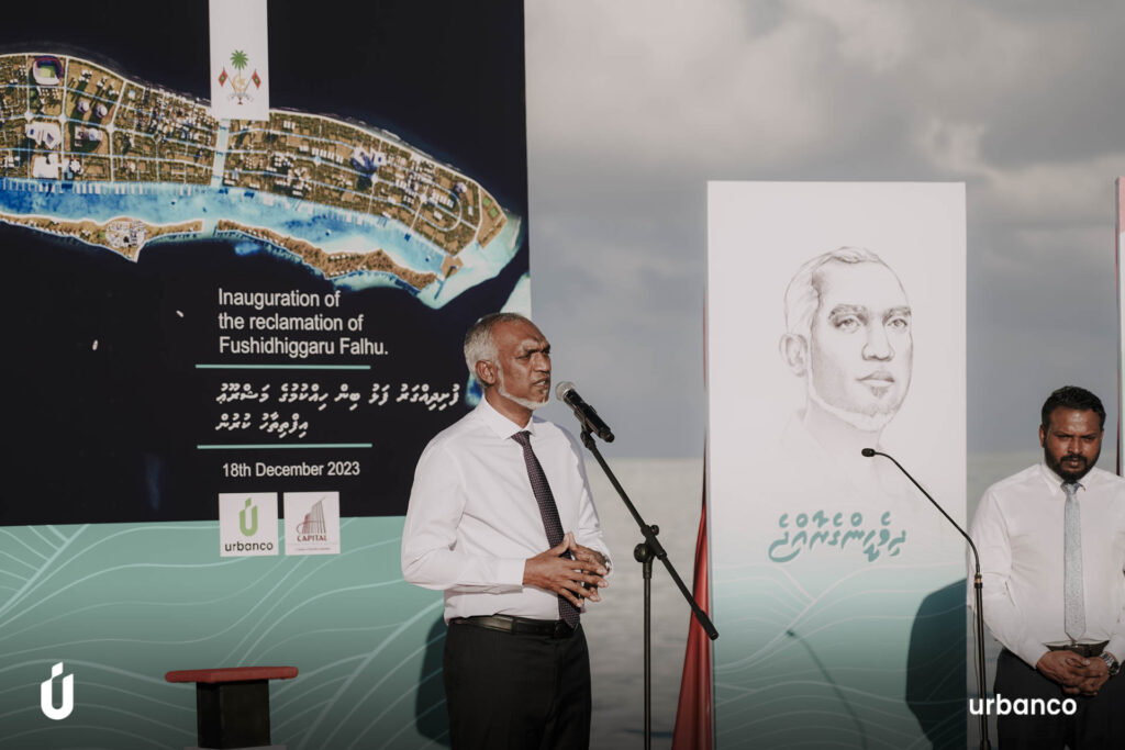 “މިތަން އަޅުގަނޑުމެން މި ތަރައްޤީ ކުރަނީ، ސޭފް އައިލެންޑެއްގެ ގޮތުގައި، އިންޓަރނޭޝަނަލް މިންގަނޑުން ކަނޑައެޅޭވަރަށް ހިއްކައިގެން. މެދަށް ތިން މީޓަރު އުސްމިން، އަރިމައްޗަށް ގާތްގަނޑަކަށް ދެ މީޓަރު އުސްމިން ހުންނާނެ. އެހެންވީމާ، އިންޓަރނޭޝަނަލް މިންގަނޑުތަކުން ބަލާއިރުގައި، ސޭފް އައިލެންޑެއްގެ ގޮތުގައި ކަނޑައެޅޭ އުސްމިނަށް މިތަން ހިކިގެންދާނީ” ރައީސުލްޖުމްހޫރިއްޔާ ވިދާޅުވިއެވެ.