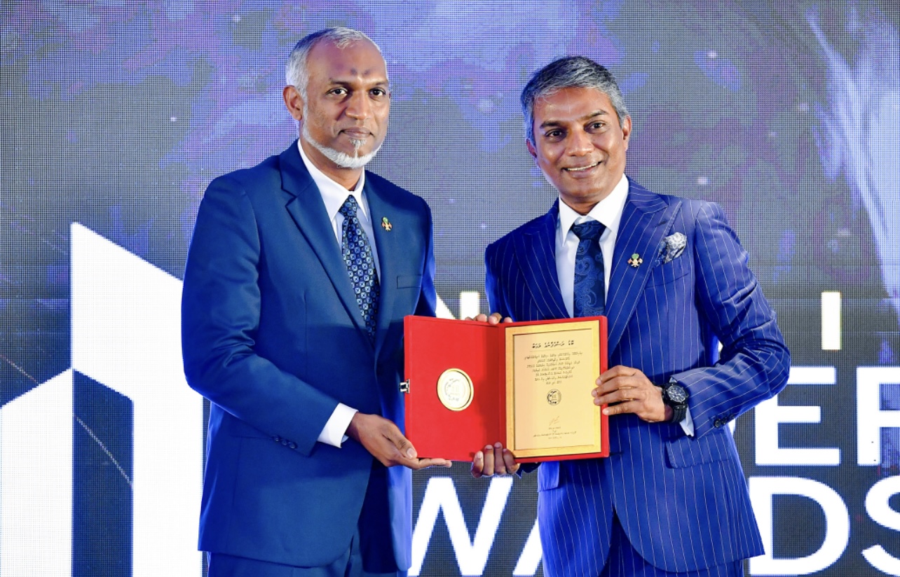 މޯލްޑިވްސް ނޭޝަނަލް އެސޯސިއޭޝަން އޮފް ކޮންސްޓްރަކްޝަން އިންޑަސްޓްރީ، މަސީން ދޭ އެންމެ ފަޚުރުވެރި ލަގަބް “ބޮޑުރަސްގެފާނު ލަގަބް” ރައީސުލްޖުމްހޫރިއްޔާ ޑރ. މުހައްމަދު މުއިއްޒުއަށް އަރުވައިފިއެވެ. މިލަޤަބް ރައީސަށް އަރުވާފައިވަނީ މަސީގެ ފުރަތަމަ ބިލްޑަރ އެވޯޑް ދިނުމުގެ ހަފްލާގައެވެ.