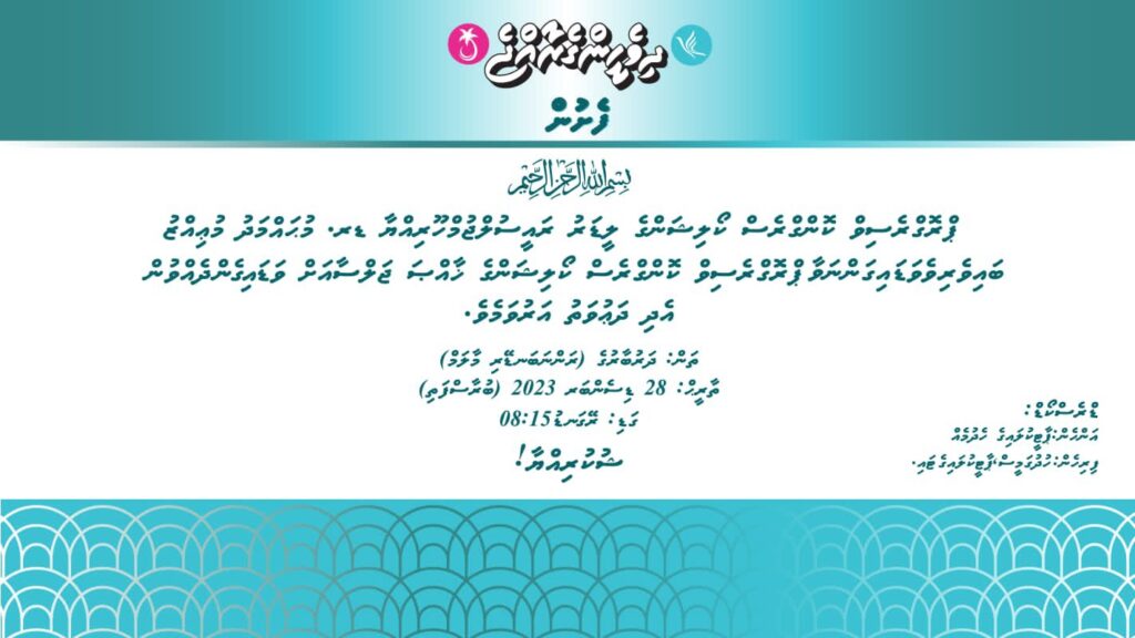 އަދި މި ޖަލްސާއަށް އަންނައިރު ކަނބަލުން ޕާޓީ ކުލައިގެ ހެދުމެއް އަދި ފިރިހެނުން ހުދު ގަމީހަކާއެކު ޕާޓީ ކުލައިގެ ޓައީއެއް އެޅުމަށް ވަނީ އެދިފައެވެ.