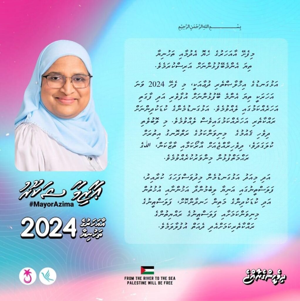 “ އަޅުގަނޑުމެންގެ ކުޑަކުދިންނަށް ރައްކާތެރި އަހަރެއް ކަމުގައިވެސް ލެއްވުމެވެ. މި ލޮބުވެތި ދިވެހި ގައުމުގެ މިނިވަންކަމުގެ ރަތްރޮނގު އިތުރަށް ކުލަގަދަވެ ދިވެހިރާއްޖެއަށް އާރޯކަމާއި ތާޒާކަން الله ގެ ރަހިމަތްފުޅުން މިންވަރު ކުރެއްވުމެވެ” އާޒިމާ ވިދާޅުވެފައިވެއެވެ.