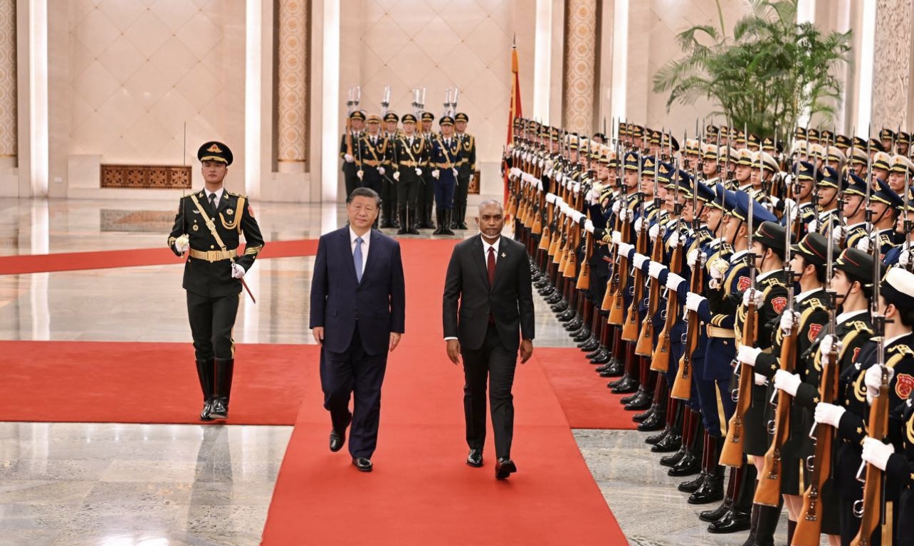 ރައީސް ޑރ. މުހައްމަދު މުއިއްޒާއި އަނބިކަނބަލުން ސާޖިދާ މުހައްމަދަށް، ޗައިނާގެ ރައީސް، ޝީ ޖިންޕިން ރަސްމީކޮށް މަރުހަބާ ދަންނަވައިފި އެވެ.