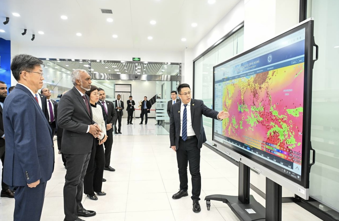 ރައީސުލްޖުމްހޫރިއްޔާ ޑރ މުޙައްމަދު މުޢިއްޒު، ޗައިނާގެ ބެއިޖިންގގައި ހުންނަ ނޭޝަނަލް ސެޓެލައިޓް މީޓިއޮރޮލޮޖިކަލް ސެންޓަރު (އެން.އެސް.އެމް.ސީ) އަށް ޒިޔާރަތް ކުރައްވައިފިއެވެ.
