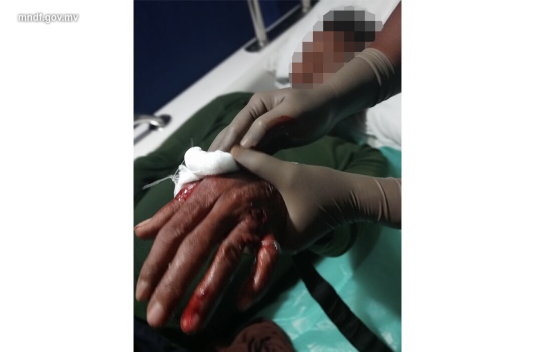 އެމްއެންޑީއެފުން ބުނީ ދޮށި އުކައިގެން މަސްވެރިކަން ކުރަމުން ދަނިކޮށް މިޔަރެއް ދަތް އެޅުމުގެ ސަބަބުން ހާލު ދެރަވި މީހަކު ޞިއްޙީ އަވަސް ފަރުވާއަށް ގެންގޮސްދިނުމަށް އެދުމުން، އެމްއެންޑީއެފް ނޮދަން އޭރިއާ ކޮމާންޑް، ކޯސްޓްގާޑު ފަސްޓް ސްކޮޑްރަންއިން އެހީތެރިކަން ފޯރުކޮށްދީފައިވާ ކަމަށެވެ.