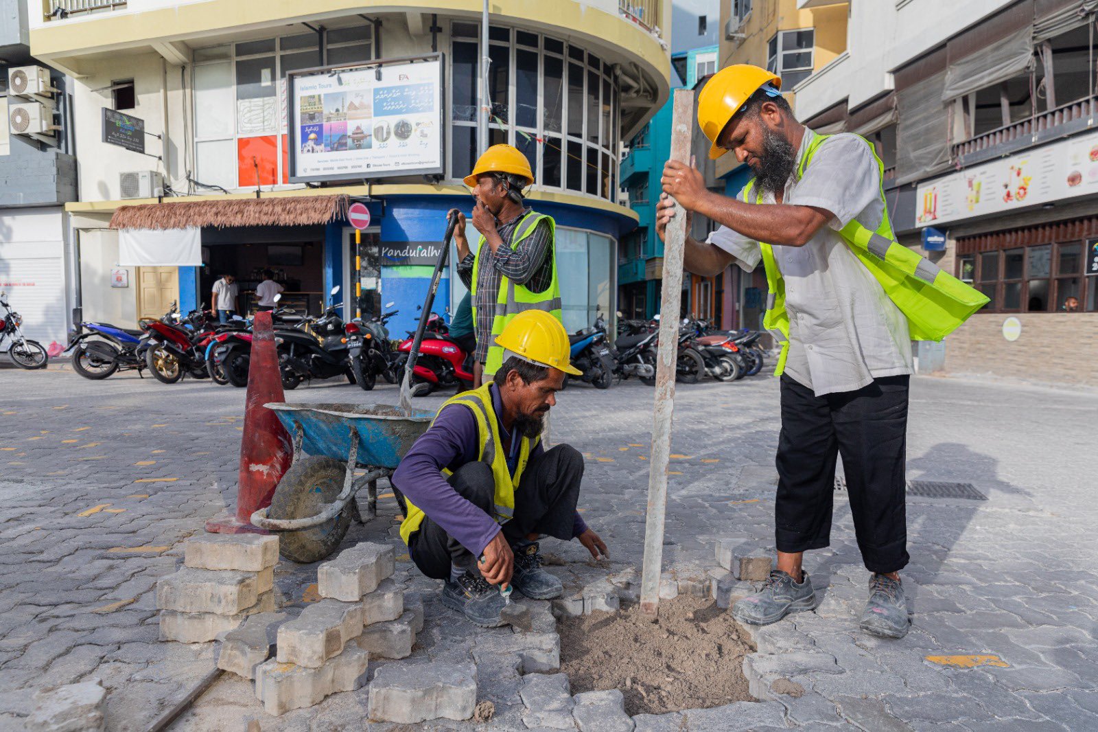 މި މަސައްކަތުގެ އަދާހަމަ ހާމަކުރައްވަމުން ޑިފެންސް މިނިސްޓްރީން ވިދާޅުވީ މަސައްކަތަށް ވެސްޓް ޕާކް ސަރަޙައްދުން ކޮނެފައިވާ ތަންތަން އެއްވަރުކޮށް، އަލުން ގައު އެތުރުމުގެ މަސައްކަތް ނިމިފައިވާކަމަށެވެ.