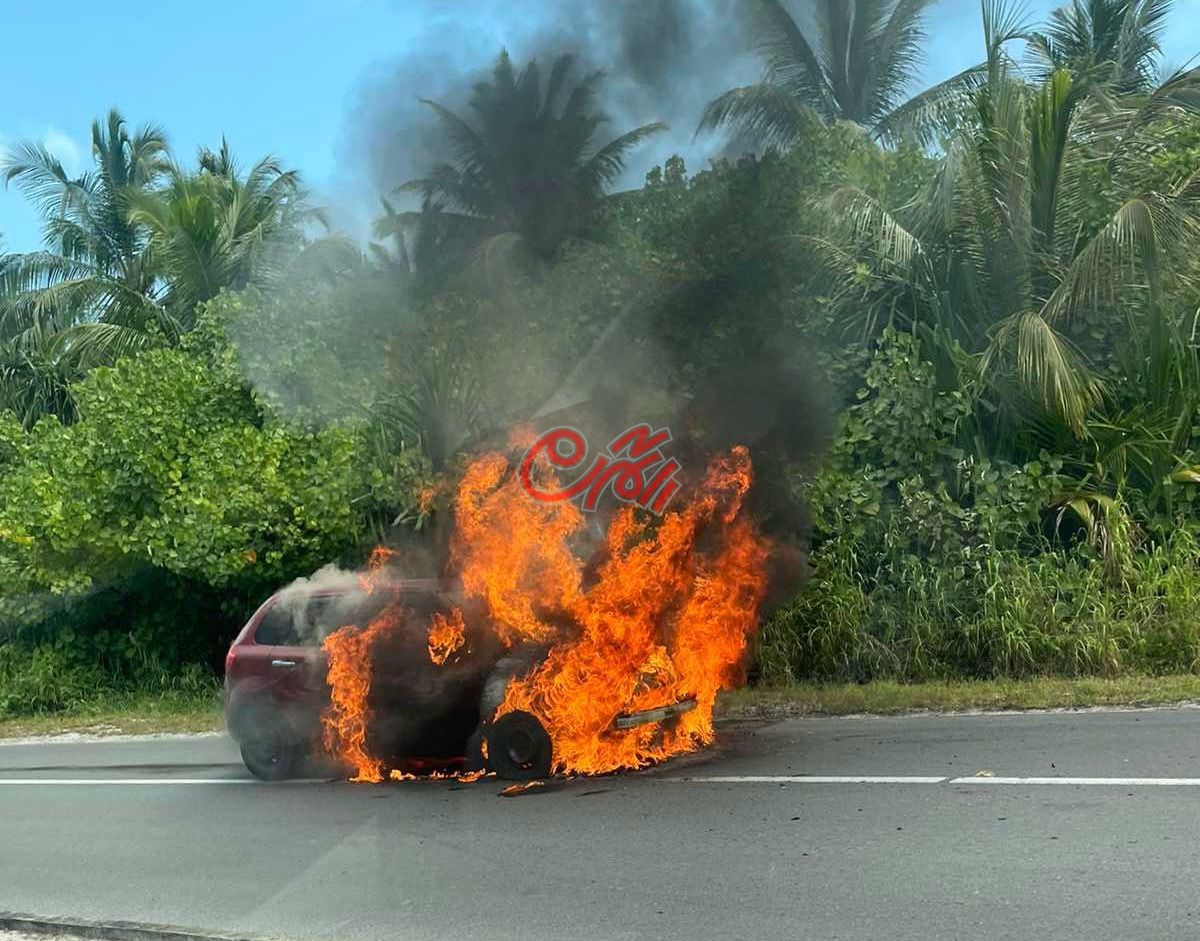 ލާމު ލިންކްރޯޑުގައި ދުއްވާފައި ދިޔަ ކާރެއްގައި އަލިފާން ރޯވެއްޖެއެވެ.