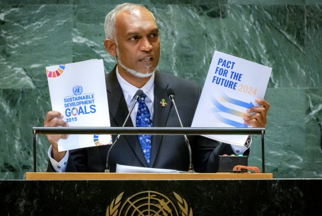 ދިވެހިރާއްޖޭގެ ކުރިމަގަށް ކުރައްވާ ތަޞައްވުރަކީ 2040 ވަނަ އަހަރު އަންނައިރު ދިވެހިރާއްޖެއަކީ ހުރިހާ މާނައެއްގައި ފުރިހަމައަށް ތަރައްޤީވެފައިވާ، ތަރައްޤީގެ އެންމެ މަތީ ހަރުފަތްތަކުގައިވާ ޤައުމެއްގެ ގޮތުގައި ފެނިގެންދިއުމަކީ އެ މަނިކުފާނު އެދިވަޑައިގަންނަވާ ގޮތް ކަމުގައި ރައީސުލްޖުމްހޫރިއްޔާ ޑރ މުޙައްމަދު މުޢިއްޒު ވިދާޅުވެއްޖެއެވެ. އެކުވެރި ދައުލަތްތަކުގެ އާންމު މަޖިލީހުގެ 79 ވަނަ ސެޝަންގައި މިރޭ ތަޤުރީރުކުރައްވަމުން، މި ތަޞައްވުރަށް ވާޞިލްވުމަށްޓަކައި އުފެއްދުންތެރިކަން އިތުރުކޮށް، ޑިޖިޓަލް ޓްރާންސްފޮމޭޝަންގެ އިތުރުން ޤައުމުގެ ޤުދުރަތީ ރީތިކަމާއި ކަނޑުފަޅުގެ މުއްސަނދިކަމުގެ ބޭނުންހިފަންޖެހޭ ކަމުގައި އެ މަނިކުފާނު ވިދާޅުވިއެވެ.