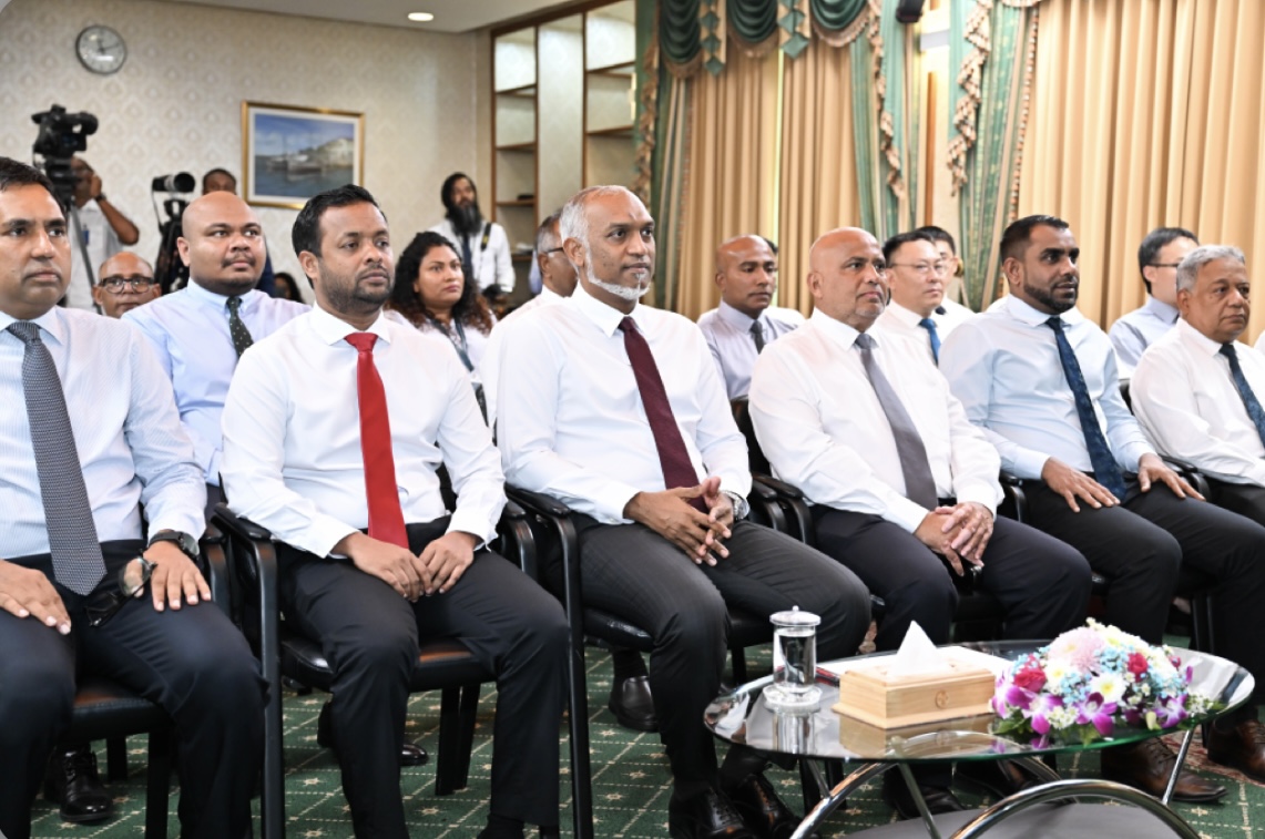 ބ. އޭދަފުށީގައި 1،000 ހައުސިންގް ޔުނިޓް ޢިމާރާތްކުރުމުގެ މަސައްކަތް، ޗައިނާގެ ސިނޯހައިޑްރޯ ހަވާލުކުރުމުގެ އެއްބަސްވުމުގައި ސޮއިކުރުމުގެ ރަސްމިއްޔާތުގައި ރައީސުލްޖުމްހޫރިއްޔާ ޑރ މުޙައްމަދު މުޢިއްޒު ބައިވެރިވެވަޑައިގެންފިއެވެ. މި ރަސްމިއްޔާތު ކުރިއަށްގެންގޮސްފައިވަނީ ރައީސުލްޖުމްހޫރިއްޔާގެ އޮފީހުގައެވެ.