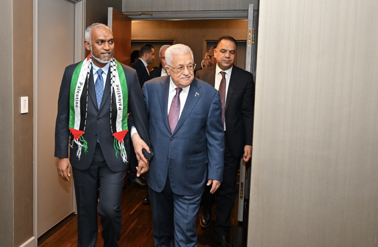 ޢަދުލުއިންޞާފާއި ޞުލްޙަވެރިކަމާއެކު ދިރިއުޅުމުގެ ޙައްޤު ހޯދުމަށް ފަލަސްޠީނުން ކުރަމުންދާ މަސައްކަތުގެ ބައިވެރިއެއްގެ ގޮތުގައި ރާއްޖެއިން ދެމިއޮންނާނެކަމުގެ ޔަޤީންކަން، ރައީސުލްޖުމްހޫރިއްޔާ ޑރ މުޙައްމަދު މުޢިއްޒު މިއަދު ތަކުރާރު ކުރައްވައިފިއެވެ.