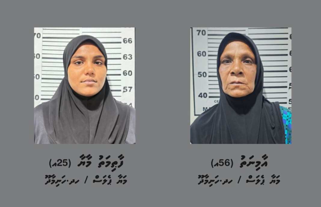 ފުލުހުން މިއަދު ބުނީ ފެބުރުވަރީ 12 ވަނަ ދުވަހު ހަނިމާދޫ ޕޮލިސް ސްޓޭޝަނާއި ކައުންޓަރ ނާކޮޓިކްސް އިންޓެލިޖެންސް ގުޅިގެން ހިންގި މި އޮޕަރޭޝަނުގައި ހައްޔަރުކޮށްފައިވަނީ ހދ. ހަނިމާދޫ މަޔާ ޕެލަސް، ޢުމުރުން 56 އަހަރުގެ އާމިނަތު އާއި ހަމަ އެގޭ ޢުމުރުން 25 އަހަރުގެ ފާޠިމަތު މާޔާ ކަމަށެވެ.