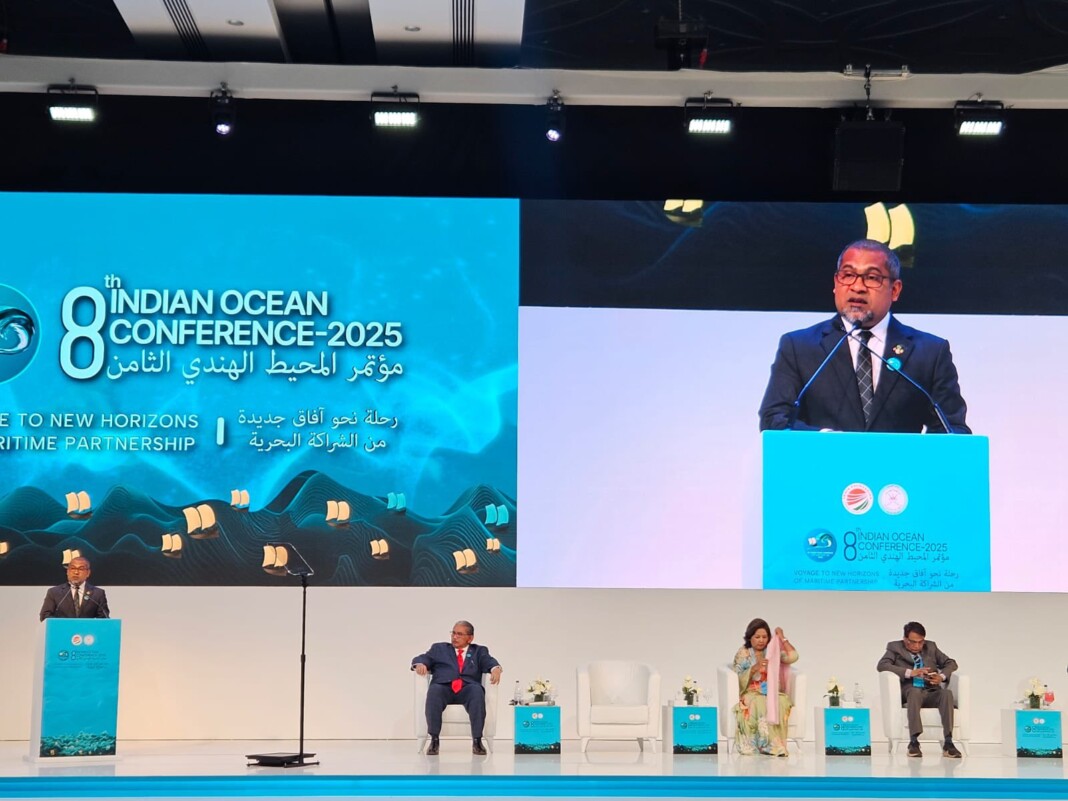 ވަޒީރު މިހެން ވިދާޅުވީ މަސްކެޓްގައި ކުރިއަށްދާ 8 ވަނަ އިންޑިއަން އޯޝަން ކޮންފަރެންސްގެ ދެވަނަ ޕްލިނަރީކަމުގައިވާ “އެމްޕްލިފައިންގ ދަ ވޮއިސް އޮފް ގްލޯބަލް ސައުތު” ގައި ޕެނަލިސްޓްއެއްގެ ހައިސިއްޔަތުން ވާހަކަފުޅު ދައްކަވަމުންނެވެ.