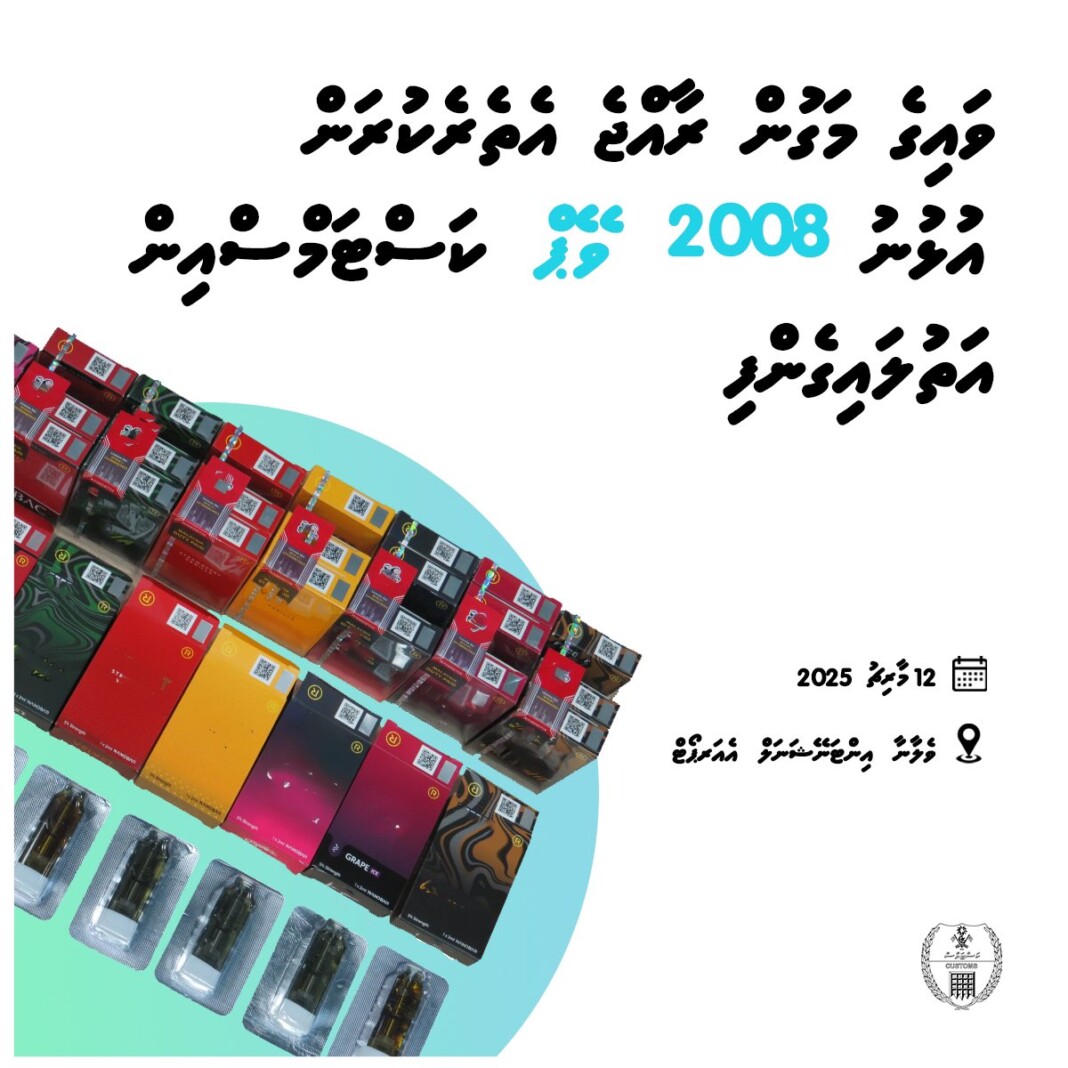 ރާއްޖެއަށް ގަވާއިދާ ޚިލާފަށް ވޭޕް އެތެރެކުރަން މަސައްކަތްކުރި ތިން ފަސިންޖަރަކު ހިފަހައްޓައި، އެއަރ ކާގޯއިން އެތެރެކުރަން އުޅުނު އިތުރު ވޭޕް ޝިޕްމަންޓެއް މޯލްޑިވްސް ކަސްޓަމްސް ސަރވިސްއިން އަތުލައިގެންފިއެވެ.