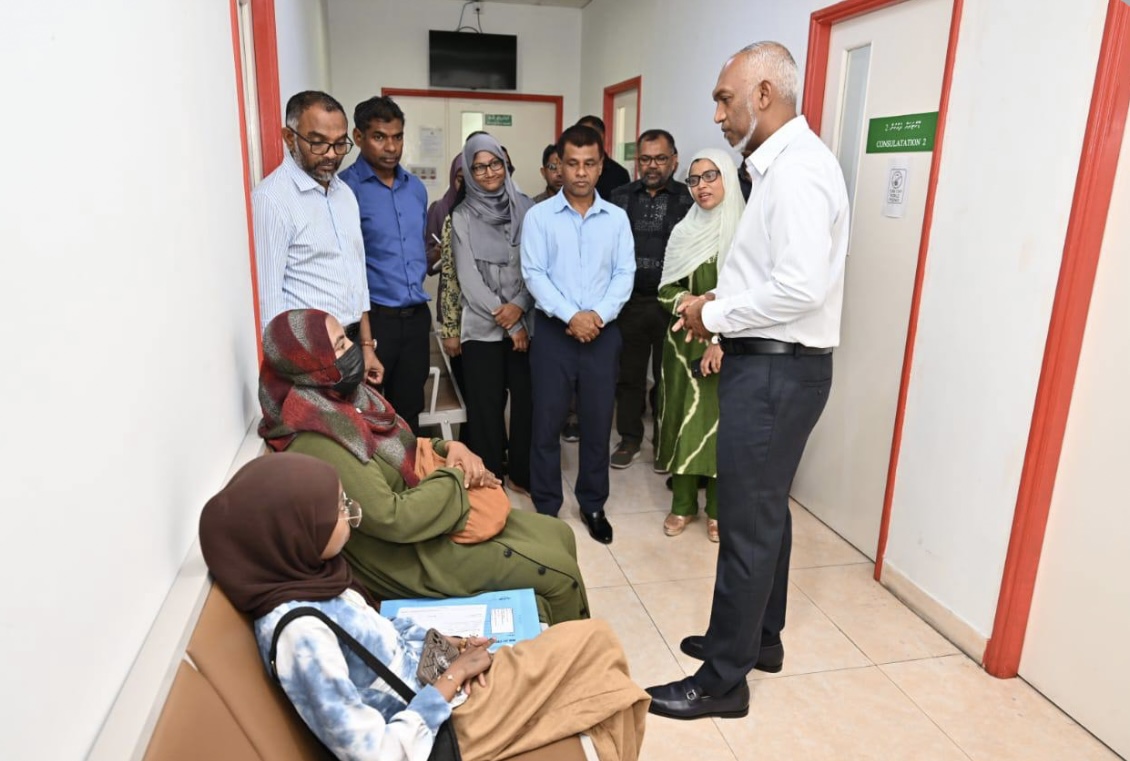 ރައީސުލްޖުމްހޫރިއްޔާ ޑރ މުޙައްމަދު މުޢިއްޒު، މިއަދު ހެނދުނު ނެޝަނަލް ތެލަސީމިއާ ސެންޓަރަށް ޒިޔާރަތްކުރައްވައި، އެތަނުގެ ހާލަތު ބައްލަވައިފިއެވެ.