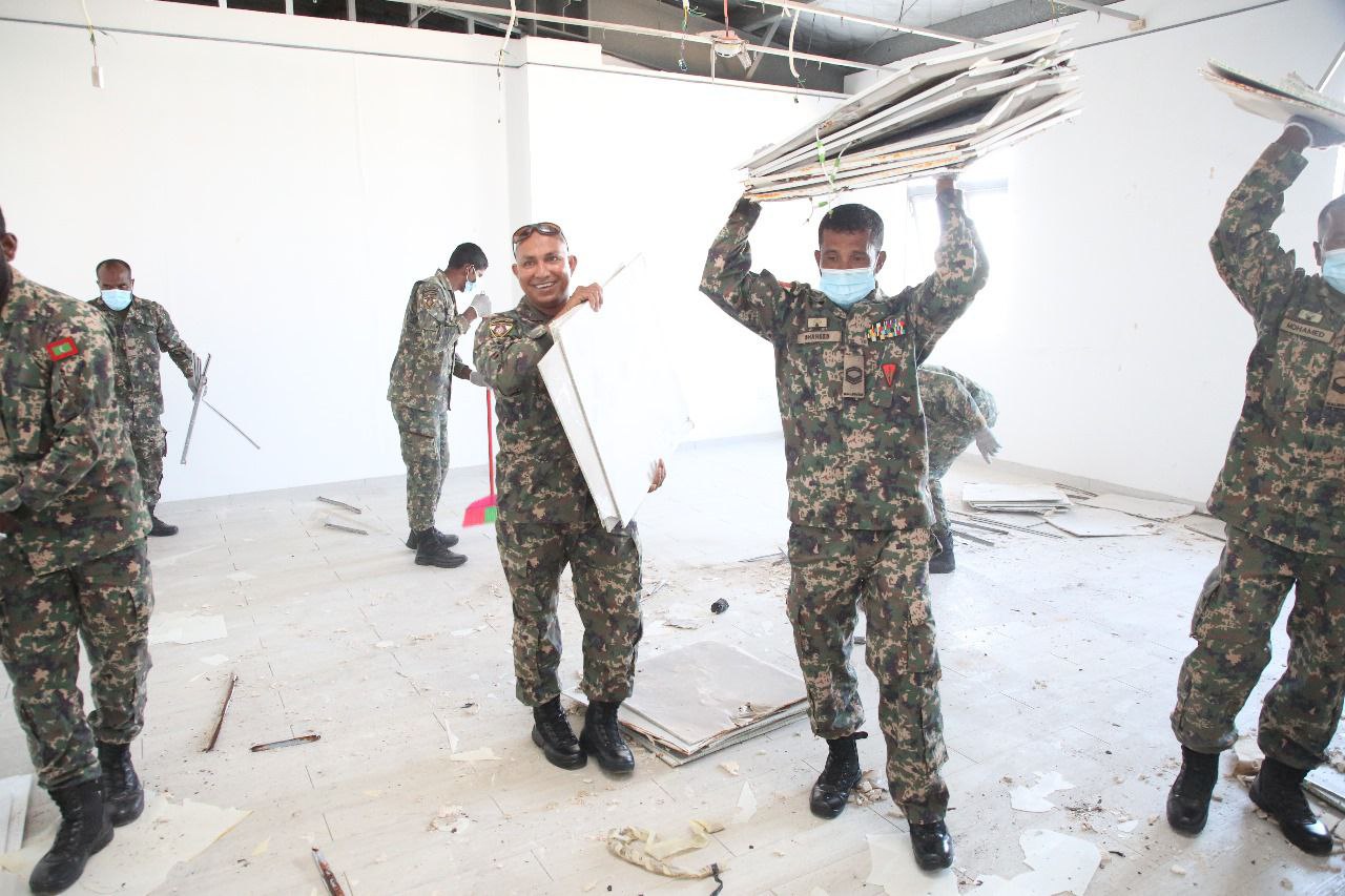 އެ މަސައްކަތް ޢަމަލީގޮތުން ސިފައިން ފެށިއިރު، ޗީފް އޮފް ޑިފެންސް ފޯސް، މޭޖަރ ޖެނެރަލް އިބްރާހީމް ޙިލްމީ ވަނީ މިއަދު އެ އިމާރާތަށް ޒިޔާރަތްކުރައްވައި، ސިފައިން ކުރަމުންދާ މަސައްކަތް ބައްލަވާލައްވާފައެވެ. ޗީފް އޮފް ޑިފެންސް ފޯސްގެ އަރިހުގައި، ވައިސް ޗީފް އޮފް ޑިފެންސް ފޯސް، ބްރިގޭޑިއަރ ޖެނެރަލް އަޙްމަދު ޣިޔާޘްއާއި އެމްއެންޑީއެފް ސަރވިސް ކޯރގެ ކޮމަޑާންޓް، ކާނަލް އިސްމާޢިލް ނަޞީރުއާއި އެމްއެންޑީއެފް ސަރވިސް ކޯރގެ ޔުނިޓްތަކުގެ ވެރިން ބައިވެރިވެ ވަޑައިގެންނެވިއެވެ.