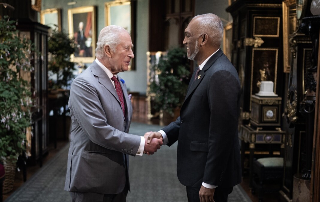 ރައީސުލްޖުމްހޫރިއްޔާ ޑރ މުޙައްމަދު މުޢިއްޒު، އިނގިރޭސިވިލާތުގެ ރަސްގެފާނު، ޗާލްސް ތިން ވަނަ އާއި ބައްދަލުކުރައްވައިފިއެވެ.