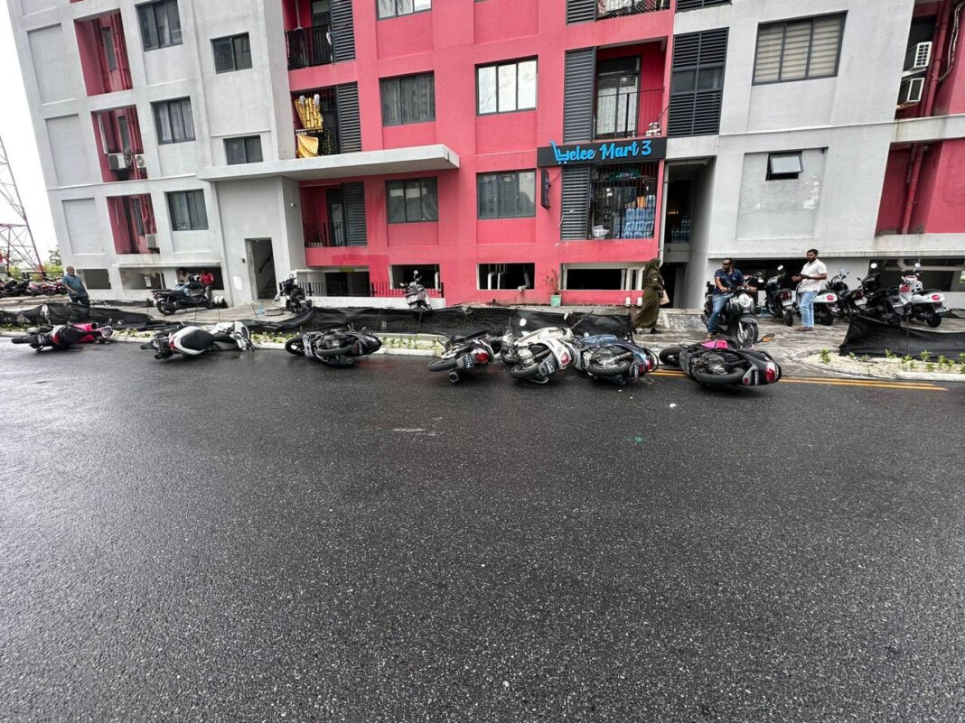 މޫސުން ގޯސްވެފައިވާ މި ދަނޑިވަޅުގައި ސައިކަލު ޕާކުކުރާއިރު ސްޓޭންޑު ރަނގަޅަށް ޖަހައި، ސައިކަލު ވެއްޓިދާނެ ގޮތަކަށް ނުބެހެއްޓުމަށް ފުލުހުން ވަނީ ޚާއްސަ އިރުޝާދުތަކެއް ދީފައެވެ.