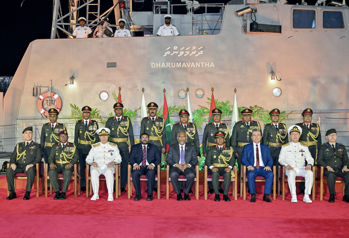 ތުރުކީވިލާތުން ދިވެހިރާއްޖެއަށް ހަދިޔާކުރި މަނަވަރު، “ދަރުމަވަންތަ” ދިވެހިރާއްޖޭގެ ޤައުމީ ދިފާޢީ ބާރާ ޙަވާލުކުރުމުގެ ރަސްމިއްޔާތު ރައީސުލްޖުމްހޫރިއްޔާ އަދި ސިފައިންގެ އެންމެ މަތީވެރިޔާ، ޑރ މުޙައްމަދު މުޢިއްޒު ޝަރަފުވެރިކޮށްދެއްވައިފިއެވެ.