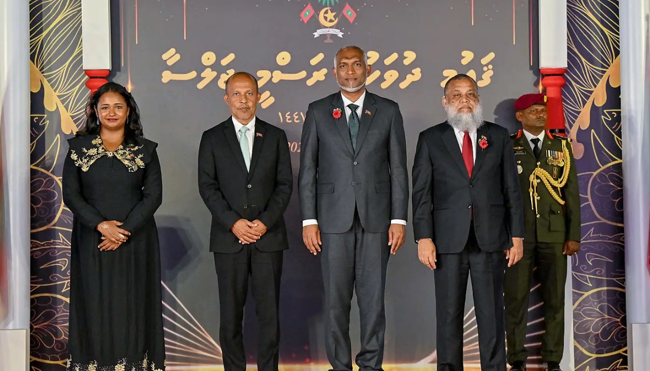 ގައުމީ ދުވަސް ފާހަގަ ކުރުމުގެ ގޮތުން މިއަދު ހއ. އުތީމުގައި ބޭއްވި ޖަލްސާގައި ދައުލަތުގެ ޝަރަފުވެރިކަމުގެ ގައުމީ އިނާމު ތިން ބޭފުޅަކަށް ރައީސް މުހައްމަދު މުއިއްޒު އަރުއްވައިފިއެވެ..