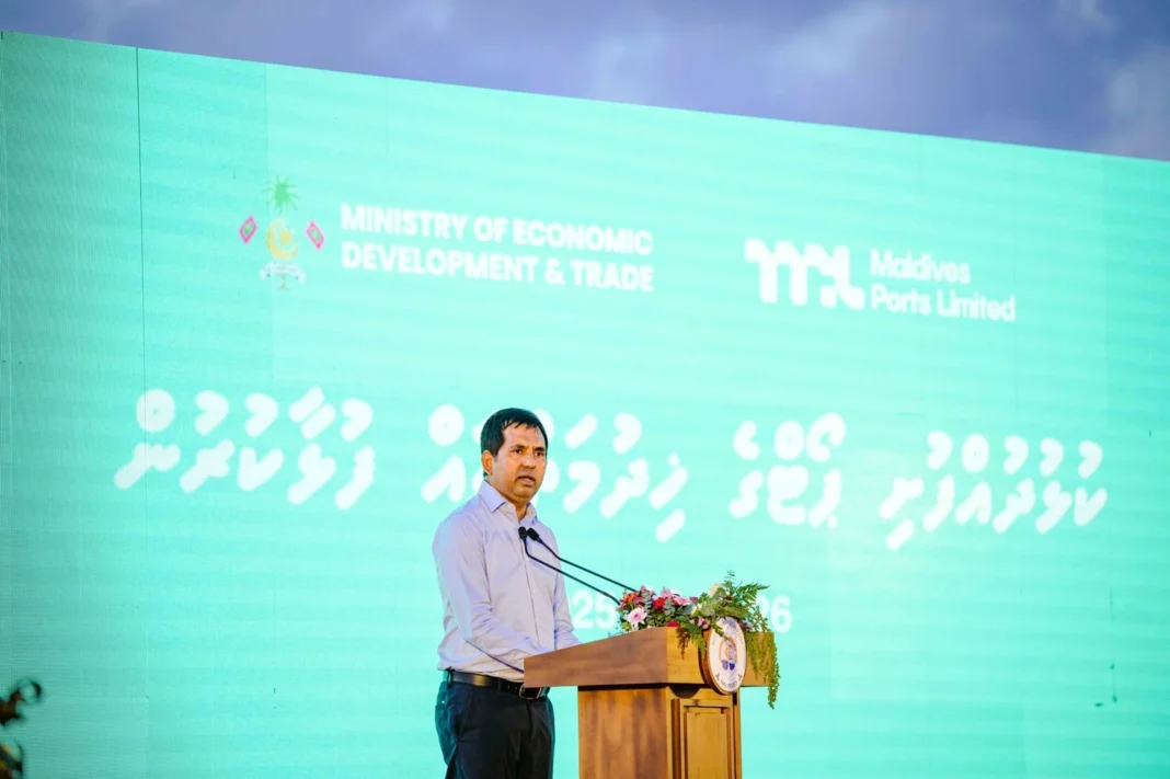 “ދުނިޔޭގެ އެހެން ތަންތާނގައި މިކަހަލަ ކޮންސެޕްޓްތަކަށް ކިޔާ މިއުޅެނީ ފްރީ ޒޯން ނުވަތަ ޑިއުޓީ ފްރީ ޒޯން. އޭގެ އިރާދަކުރެއްވިއްޔާ ކުޑަ ވާޝާންއެއް ރާއްޖޭގައި ފެށިގެން މިދިޔައީ. މިކަން ތަރައްޤީކުރަން ދެން ކުރަންޖެހޭ ހުރިހާ މަސައްކަތެއް ހަމަ ވަރަށް ބާރު ސްޕީޑްގައި އެމްޕީއެލް އިން ކުރަމުން އެބަގެންދޭ”، ވަޒީރު ވިދާޅުވިއެވެ.