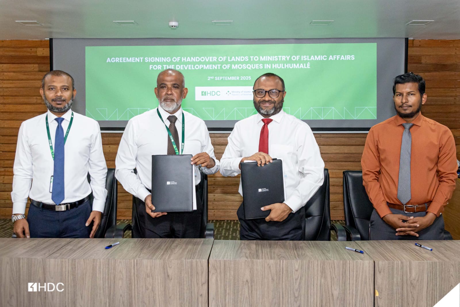ހުޅުމާލޭ ދެވަނަ ފިޔަވަހީގައި އިތުރު ދެ މިސްކިތް ގާއިމްކުރުމަށް ބޭނުންވާ ބިންހަވާލުކުރުމަށް އެޗްޑީސީއާއި އިސްލާމިކް މިނިސްޓްރީއާ ދެމެދު އެއްބަސްވުމެއްގައި ސޮއިކޮށްފިއެވެ.