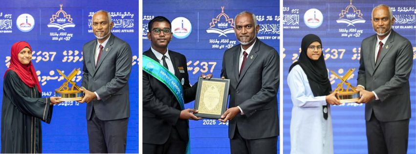 ކީރިތި ޤުރުއާން ކިޔެވުމުގެ 37 ވަނަ ޤައުމީ މުބާރާތުގެ ފަޚުރުވެރި ރަންވަނަތައް ފާޠިމަތު ޝާޔާ ޒާހިރާއި ޢައިޝަތު ޝަބާ އަދި އަޙްމަދު ޝައިމް ރިޒާ އަށް ލިބިއްޖެއެވެ.