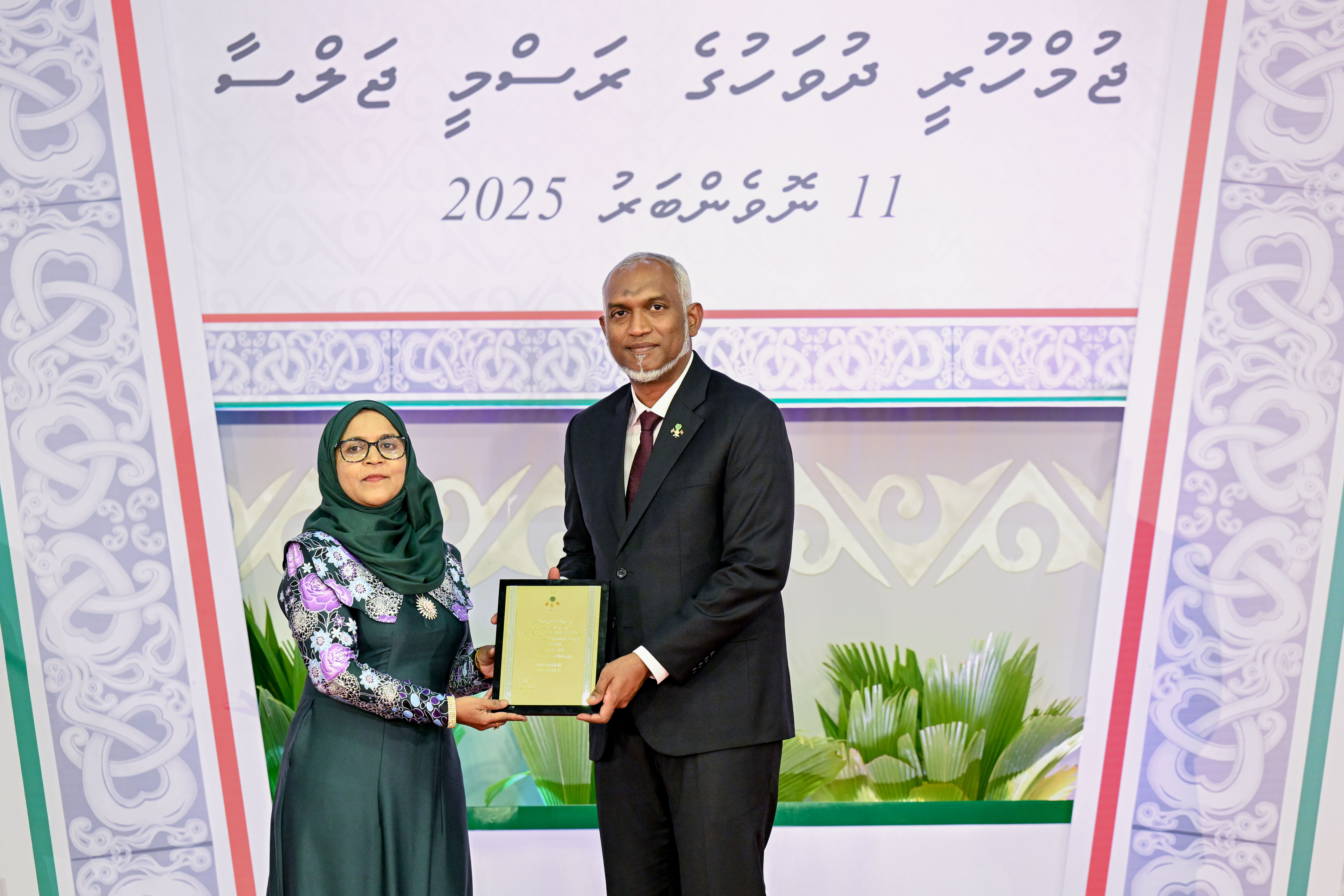 ދިވެހިބަހުގެ އެންމެ ފުރަތަމަ ޑރ އޮފް ފިލޯސޮފީގެ ސަނަދު، ދިވެހިބަހުން ހާސިލުކުރެއްވި ޑރ އާމިނަތު ޒާހިރަށް ސަރުކާރުން ހަނދާނީ ފިލައެއް ދެއްވައިފިއެވެ. މި ފިލާ ދެއްވީ، ޖުމްހޫރީ ދުވަހުގެ މުނާސަބަތުގައި މިއަދު ހެނދުނު ޒުވާނުންގެ މަރުކަޒުގެ ހޯލުގައި ބޭއްވެވި ރަސްމީ ޖަލްސާގައި، ރައީސުލްޖުމްހޫރިއްޔާ ޑރ މުޙައްމަދު މުޢިއްޒުއެވެ.