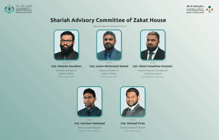 ޒަކާތުގެ ޤާނޫނުގެ ދަށުން އުފައްދަންޖެހޭ ‘ޝަރީޢާ އެޑްވައިޒަރީ ކޮމިޓީ’ ރައީސުލްޖުމްހޫރިއްޔާ ޑރ. މުޙައްމަދު މުޢިއްޒު އުފައްދަވައި، އެ ކޮމިޓީއަށް މެންބަރުން ޢައްޔަނުކުރައްވައިފިއެވެ. މި ކޮމިޓީއަކީ ރާއްޖޭގެ ޒަކާތުގެ ނިޒާމު ހަރުދަނާކޮށް، ޒަކާތުގެ ޤާނޫނު ތަންފީޛުކުރުމުގައި ބޭނުންވާ ޝަރުޢީ ލަފާއާއި އިރުޝާދު ދިނުމަށްޓަކައި، އިސްލާމީ ކަންތައްތަކާ ބެހޭ ވަޒީރުގެ ލަފާގެ މަތިން އެކުލަވައިލެއްވި ކޮމިޓީއެކެވެ.