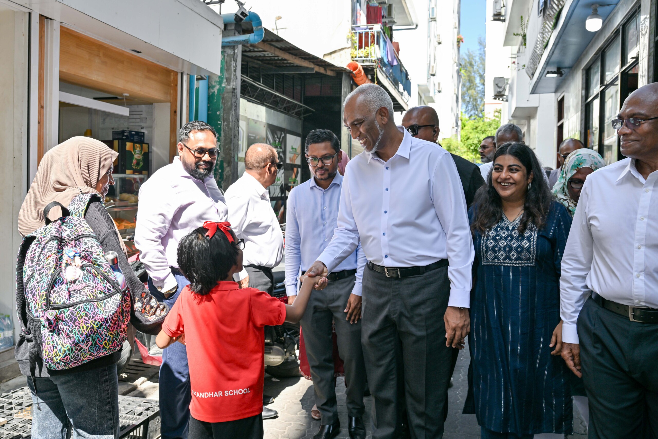 ރައީސުލްޖުމްހޫރިއްޔާ ޑރ. މުޙައްމަދު މުޢިއްޒު މާލެ ސިޓީގެ އެކި ދާއިރާތަކުގައި ކުރިއަށްގެންދަވާ “ދޮރުން ދޮރަށް” ހަރަކާތުގެ ދެވަނަ ބުރުގެ ތެރެއިން މިއަދު ގަލޮޅު އުތުރު ދާއިރާއަށް ވަޑައިގެންފިއެވެ. މި ޒިޔާރަތުގައި އެމަނިކުފާނު ވަނީ އެ ދާއިރާގެ ގިނަ ގެތަކަކަށް ވަޑައިގެން، ރައްޔިތުންގެ ހާލު ބައްލަވައި، އެ ފަރާތްތަކުގެ ކަންބޮޑުވުންތަކާއި އުދާސްތައް އަޑުއެއްސެވުމުގައި ގިނަ ވަގުތުތަކެއް ހޭދަކުރައްވާފައެވެ.