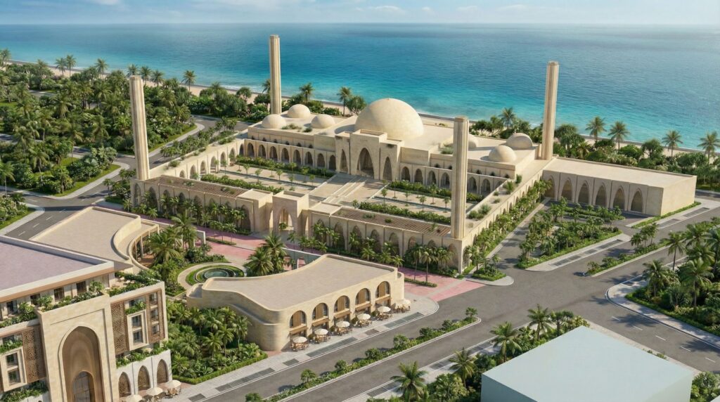 މި މިސްކިތް ބިނާކުރާނީ ކޮމްޕްލެކްސްގައި ވަޤުފު ބިނާތަކާއި ކޮމާޝަލް ބިލްޑިންގއާއި ޕާކިންވެސް ހިމެނޭހެންނެވެ. ވަޤުފު ޢިމާރާތުން ލިބޭ ނަފާ ހޭދަކުރެވިގެންދާނީ ރާއްޖޭގެ އިސްލާމީ ކަންތައްތަކަށްކަމަށް އިސްލާމީ ކަންތައްތަކާއި ބެހޭ ވުޒާރާއިން ހާމަކުރެއެވެ. އަދި ޤުރުއާން މިއުޒިޔަމަކާއި އެހެނިހެން މުހިންމުކަންކަންވެސް މިސްކިތުގައި ހިމެނޭނެކަމަށް އިސްލާމީކަންތައްތަކާ ބެހޭ ވަޒީރު ޑރ. މުޙައްމަދު ޝަހީމް އަލީ ސަޢީދު ވިދާޅުވެފައިވެއެވެ.