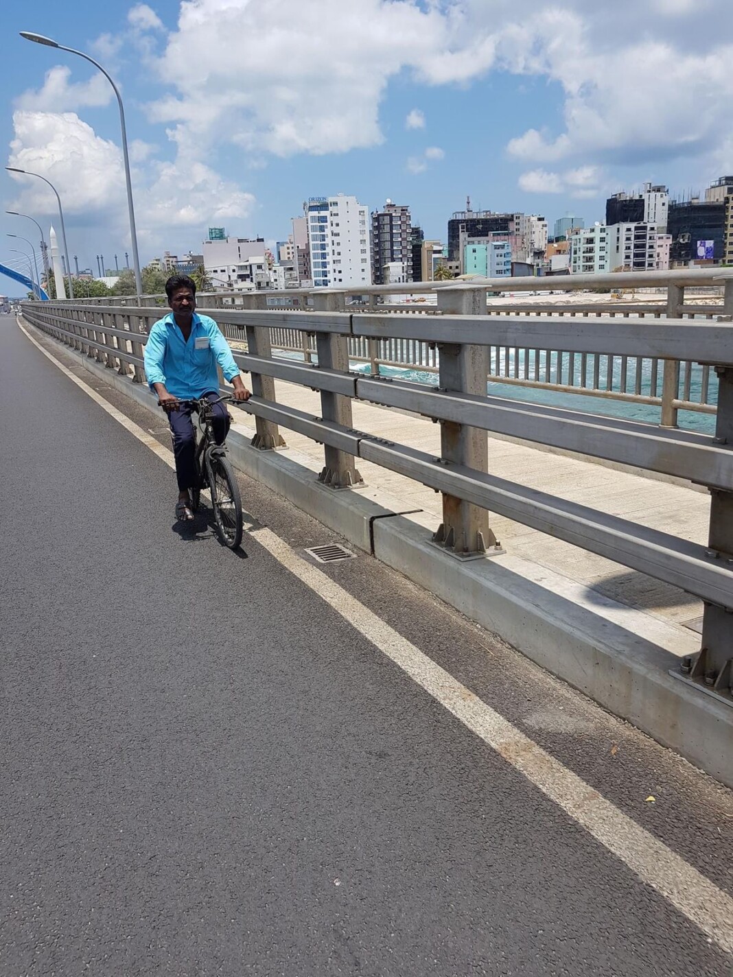 ސިނަމާލެ ބްރިޖުގައި ބޭރު މީހަކު ބައިސްކަލް ދުއްވާ ފޮޓޯއެއް ސޯޝަލް މީޑިއާގައި ދައުރުވާން ފަށައިފިއެވެ. ބެލެވޭ ގޮތުގައި މިމީހާ ގޮސްފައިވަނީ މާލެއިން ހުޅުމާލެއަށެވެ.