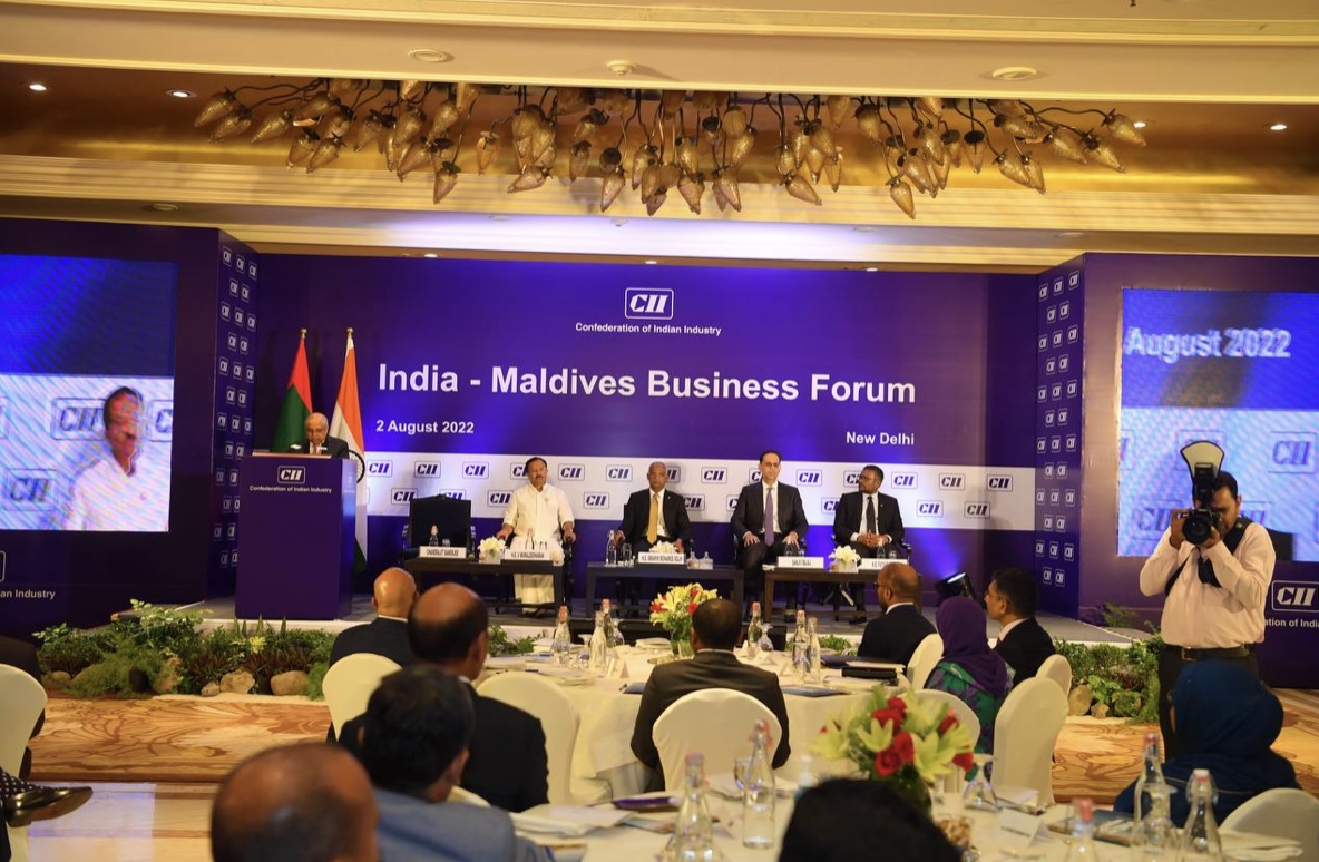 އިންޑިއާގެ ވެރިރަށް ނިއު ދިއްލީގައި ބޭއްވި އިންޑިއާ – މޯލްޑިވްސް ބިޒްނަސް ފޯރަމްގައި ވާހަކަފުޅު ދައްކަވަމުން ރައީސް ސާލިހް ވިދާޅުވީ،