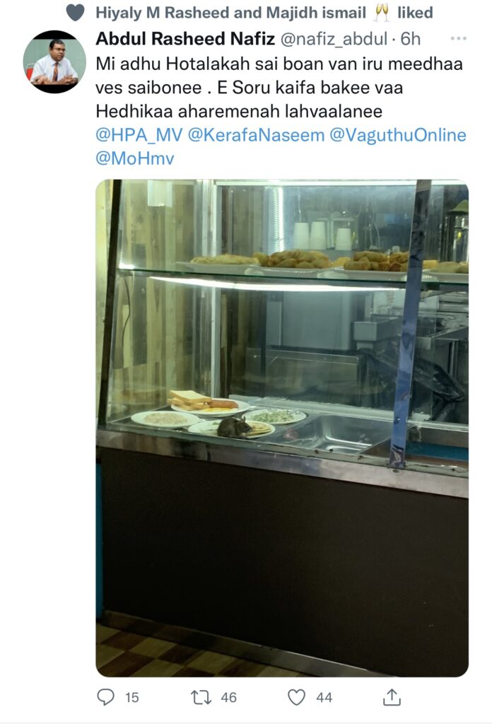 ހޮޓަލެއްގެ ތެރޭގައި މީދަލެއް ކާން އިން ފޮޓޯ އެއް ސޯޝަލް މީޑިއާގައި ދައުރުވާން ފަށައިފިއެވެ.
